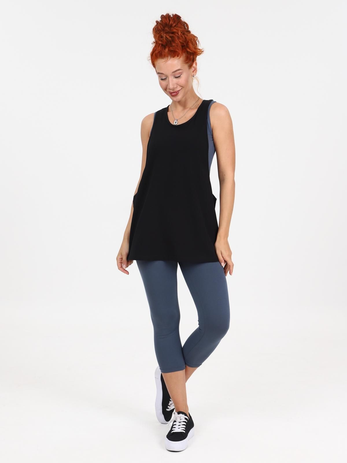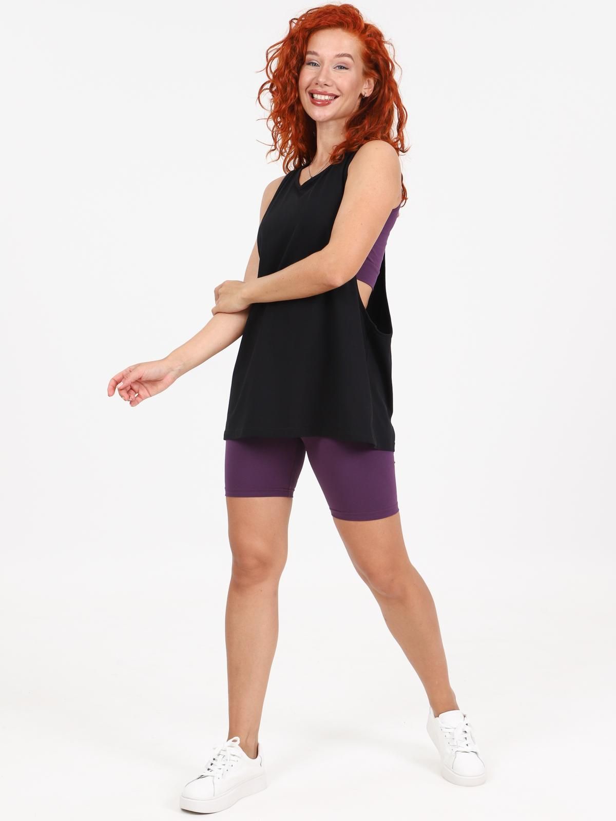 Майка «Ритмика» — это стильная модель прямого силуэта с элементами оверсайз, предназначенная для повседневной носки и занятий спортом.