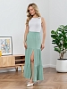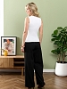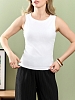 Майка-топ молодежная из гладкокрашеного трикотажного полотна с рельефной структурой (лапша), прилегающего силуэта, без рукавов, с горловиной овальной формы. Проймы и горловина изделия обработаны притачными планками с отделочными строчками по швам притачивания.