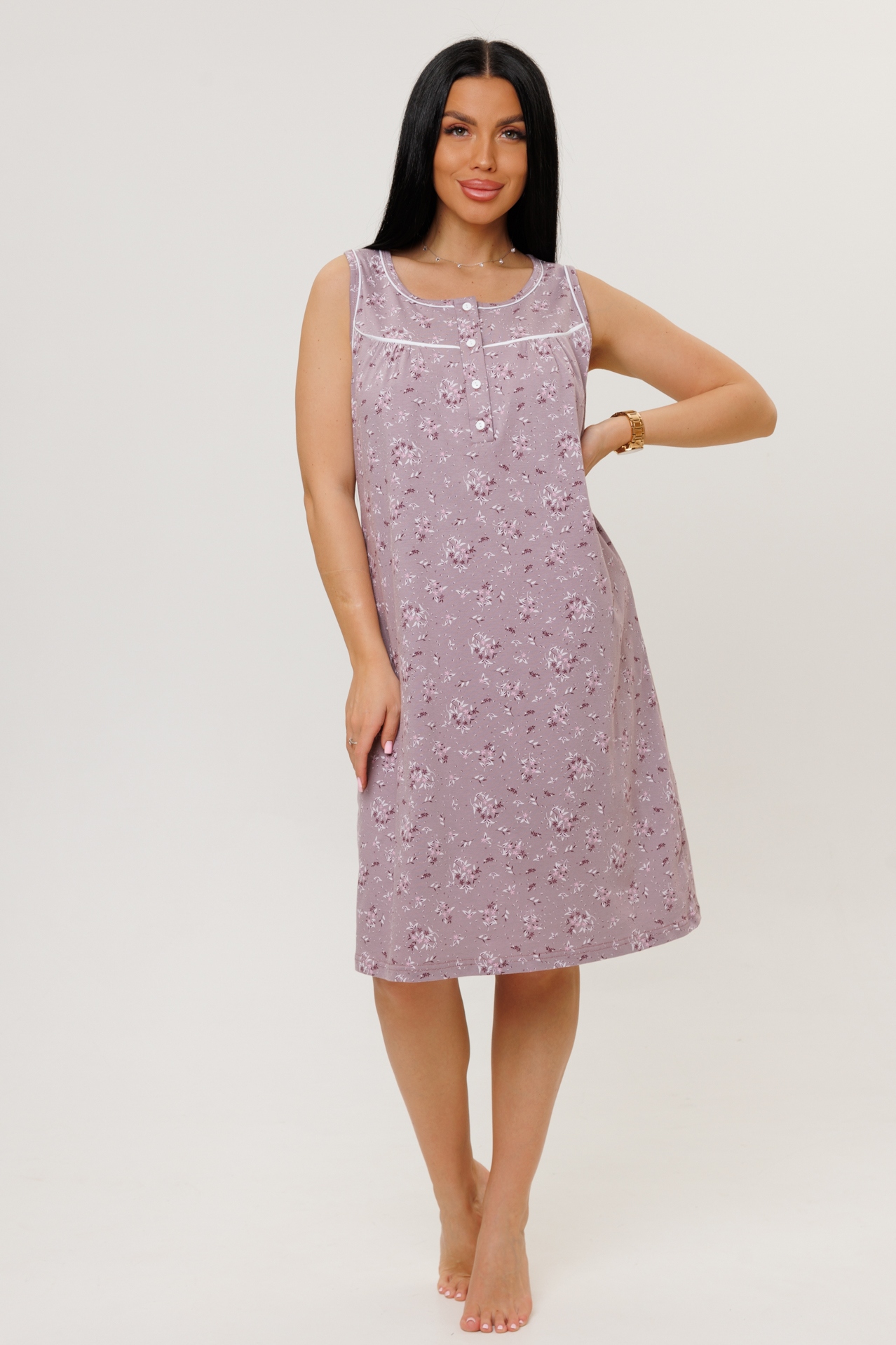 Женская сорочка из кулирки без рукавов — это трикотажная одежда для сна или домашнего использования, изготовленная из тонкого хлопкового полотна. Кулирка — мягкое и гигроскопичное полотно, которое хорошо пропускает воздух и не вызывает аллергии.
