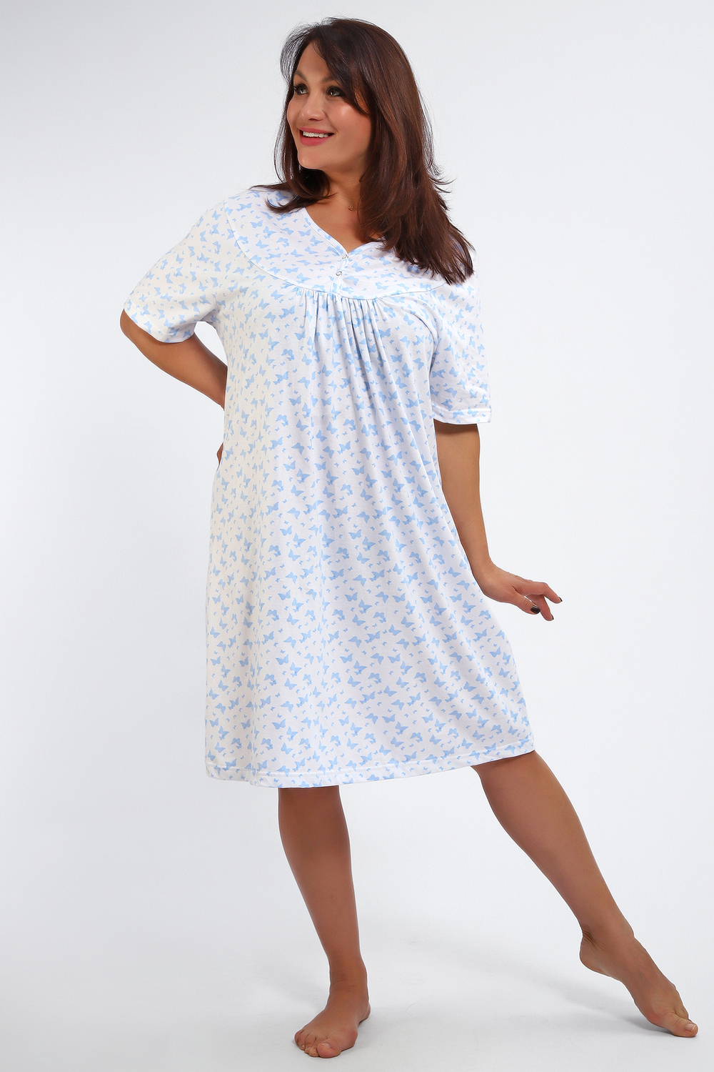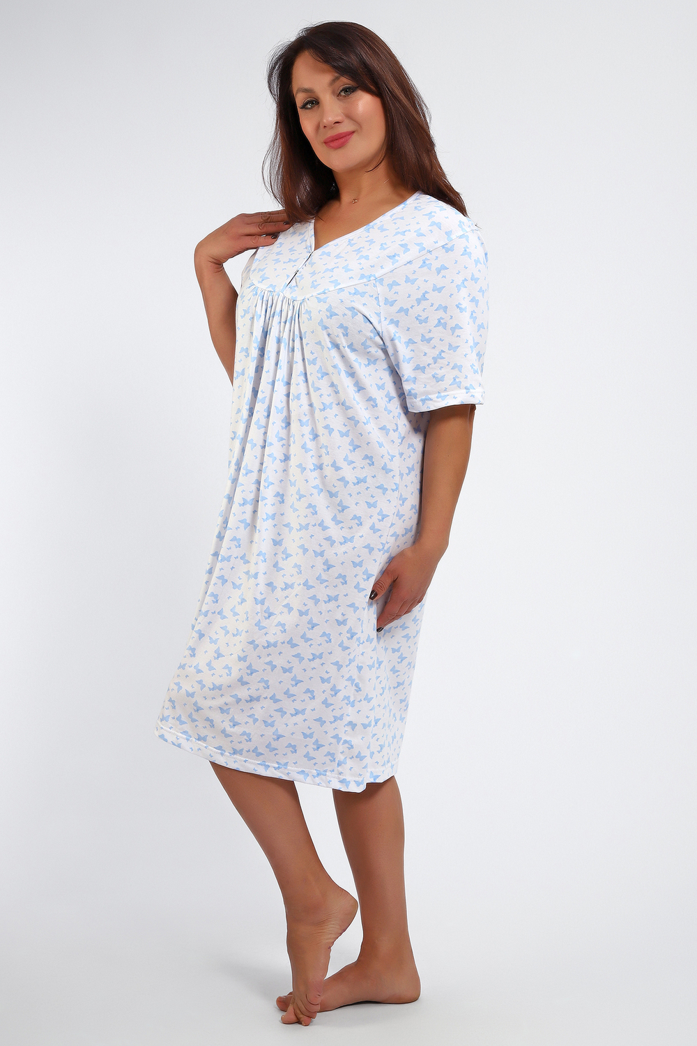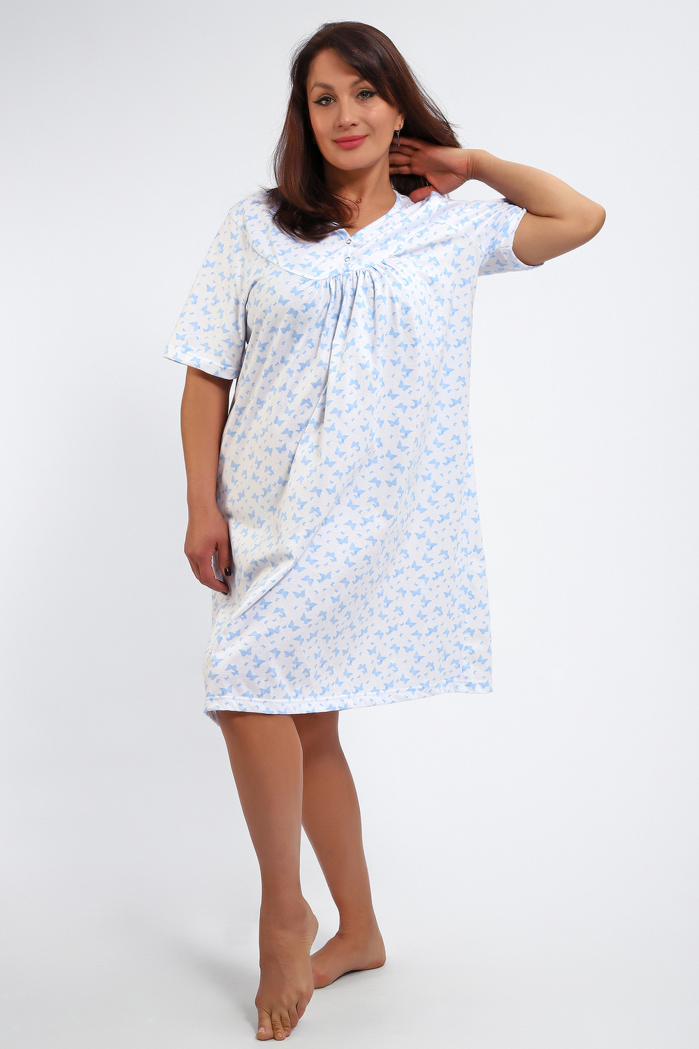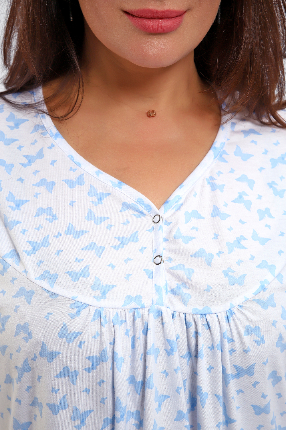 Сорочка женская с рукавом и кнопками. Данная модель выполнена из трикотажного полотна кулирка ( хлопок 100%). У данной модели полоска и спинка отрезная . Свободного покроя, не стесняет движения.