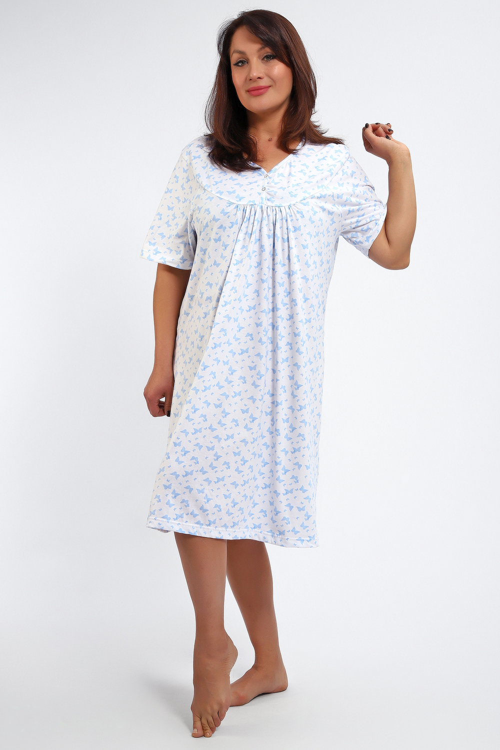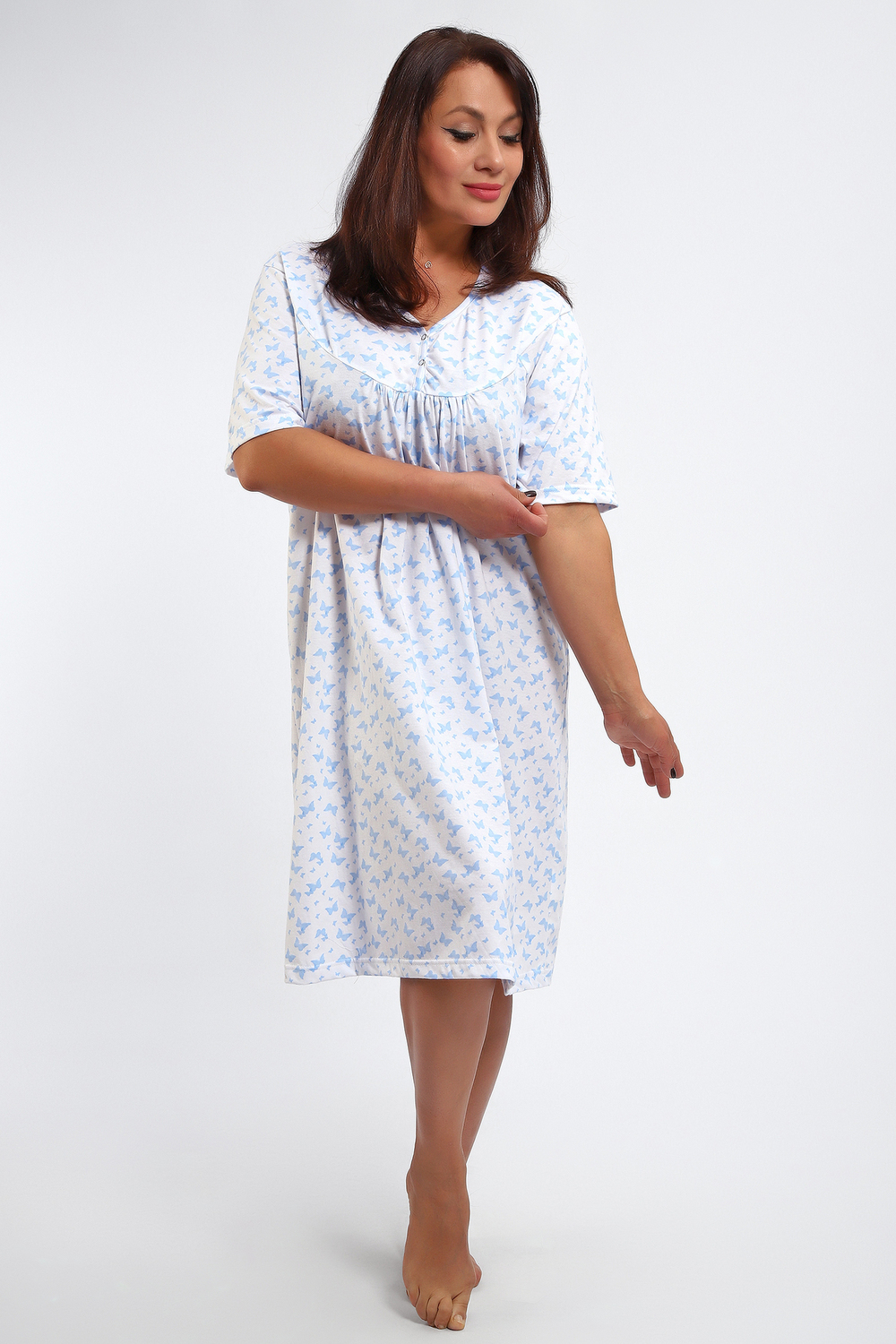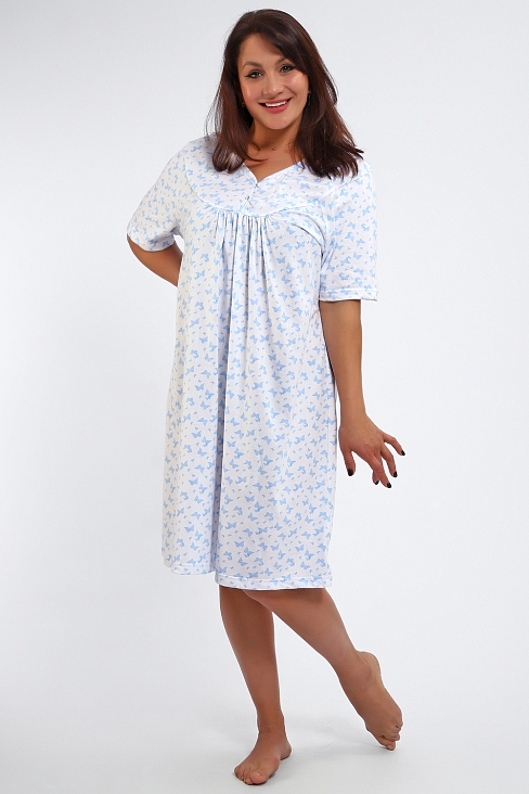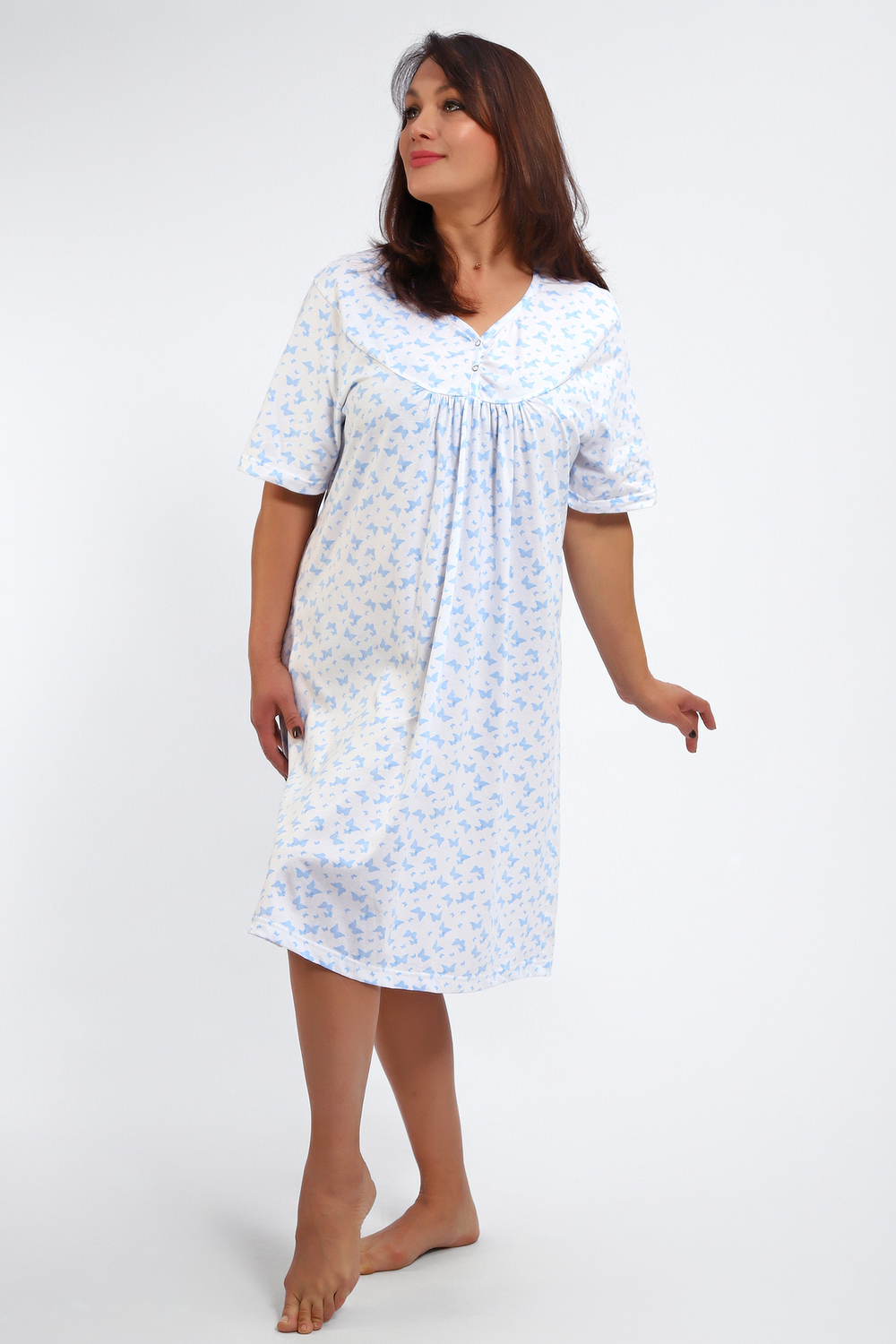 Сорочка женская с рукавом и кнопками. Данная модель выполнена из трикотажного полотна кулирка ( хлопок 100%). У данной модели полоска и спинка отрезная . Свободного покроя, не стесняет движения.
