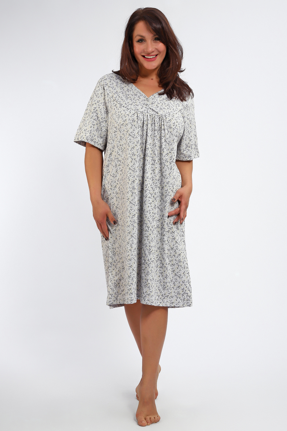 Сорочка женская с рукавом и кнопками. Данная модель выполнена из трикотажного полотна кулирка ( хлопок 100%). У данной модели полоска и спинка отрезная . Свободного покроя, не стесняет движения.