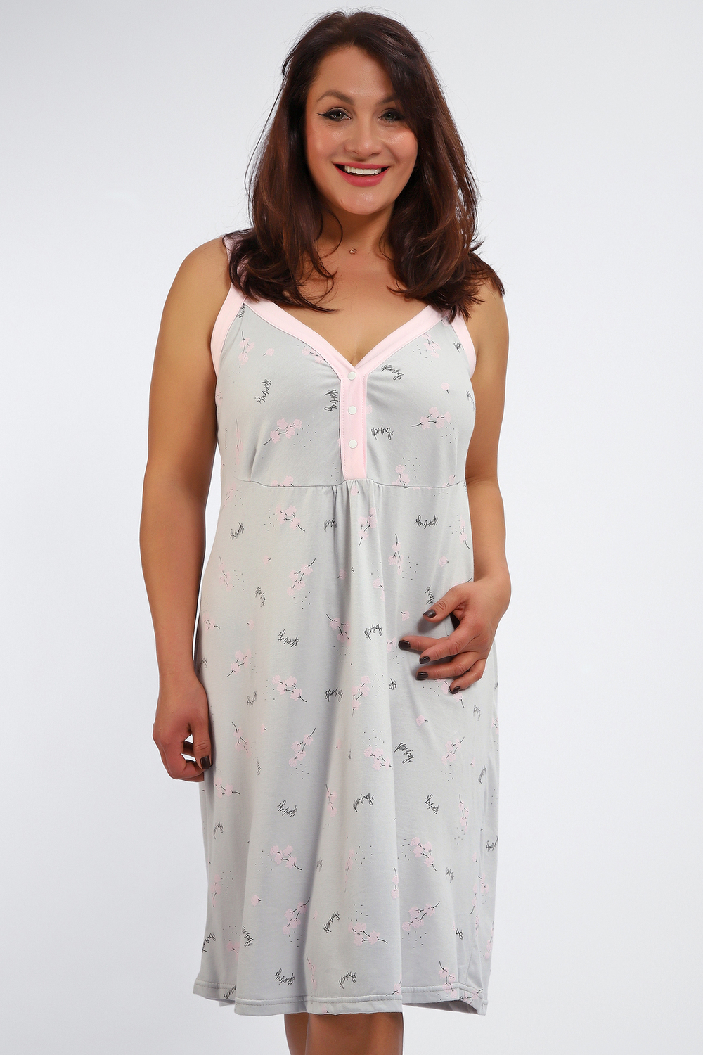 Сорочка женская без рукава на брителях . Данная модель выполнена из трикотажного полотна кулирка ( хлопок 100%). Полочка отрезная с кнопками. Горловина обработана широкой окантовкой. Отличная модель для сна и кормления.