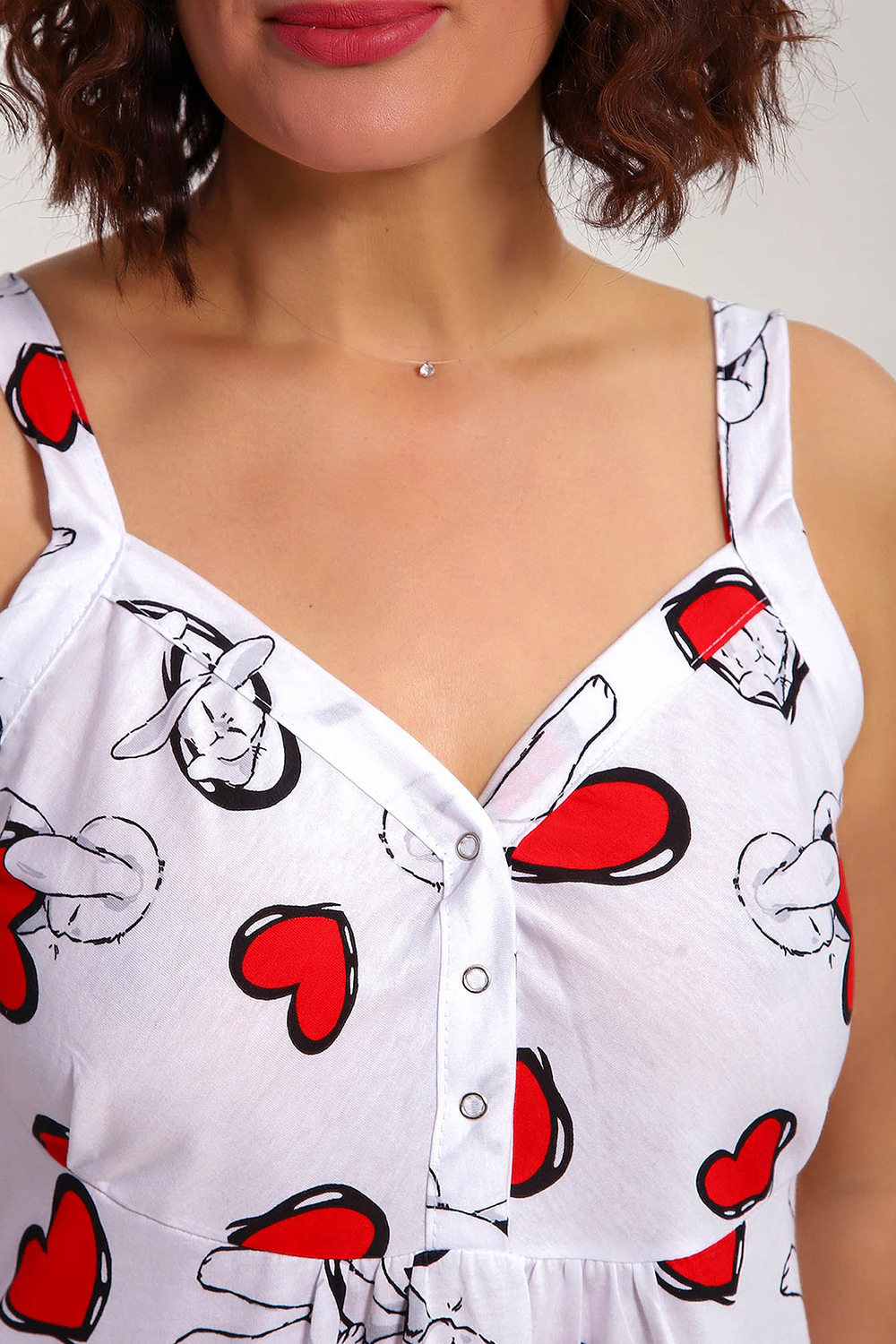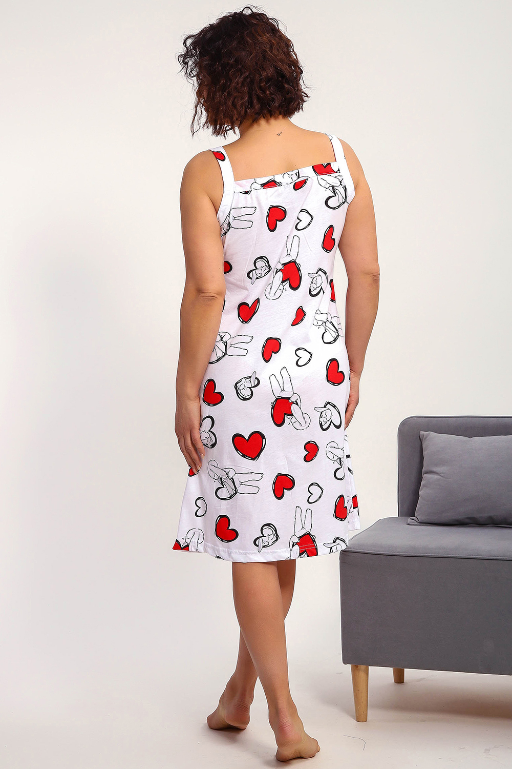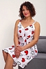 Сорочка женская без рукава на широких брителях . Данная модель выполнена из трикотажного полотна кулирка ( хлопок 100%). Полочка отрезная с кнопками. Горловина обработана широкой окантовкой. Отличная модель для сна и кормления.