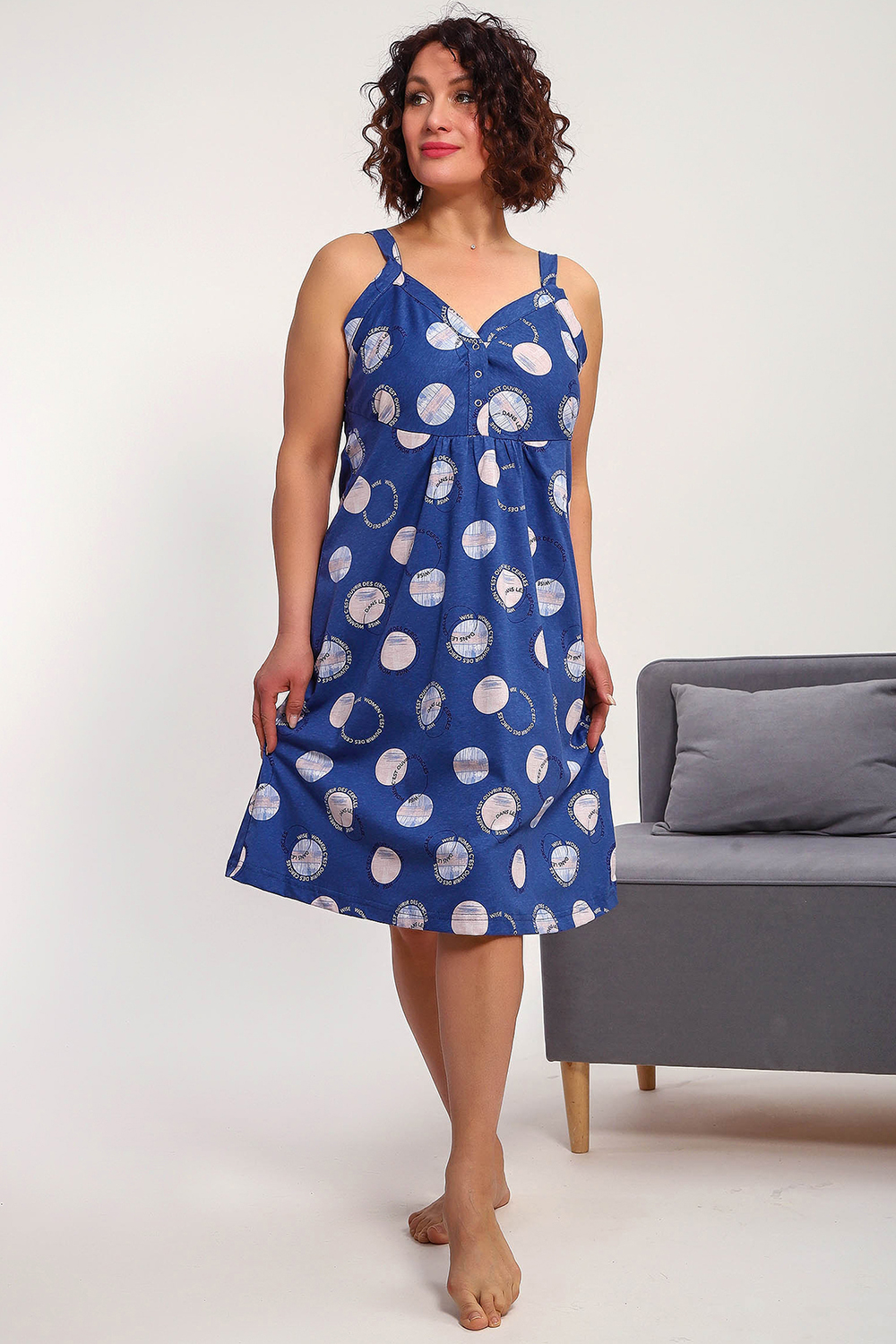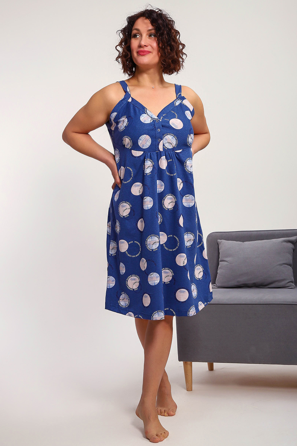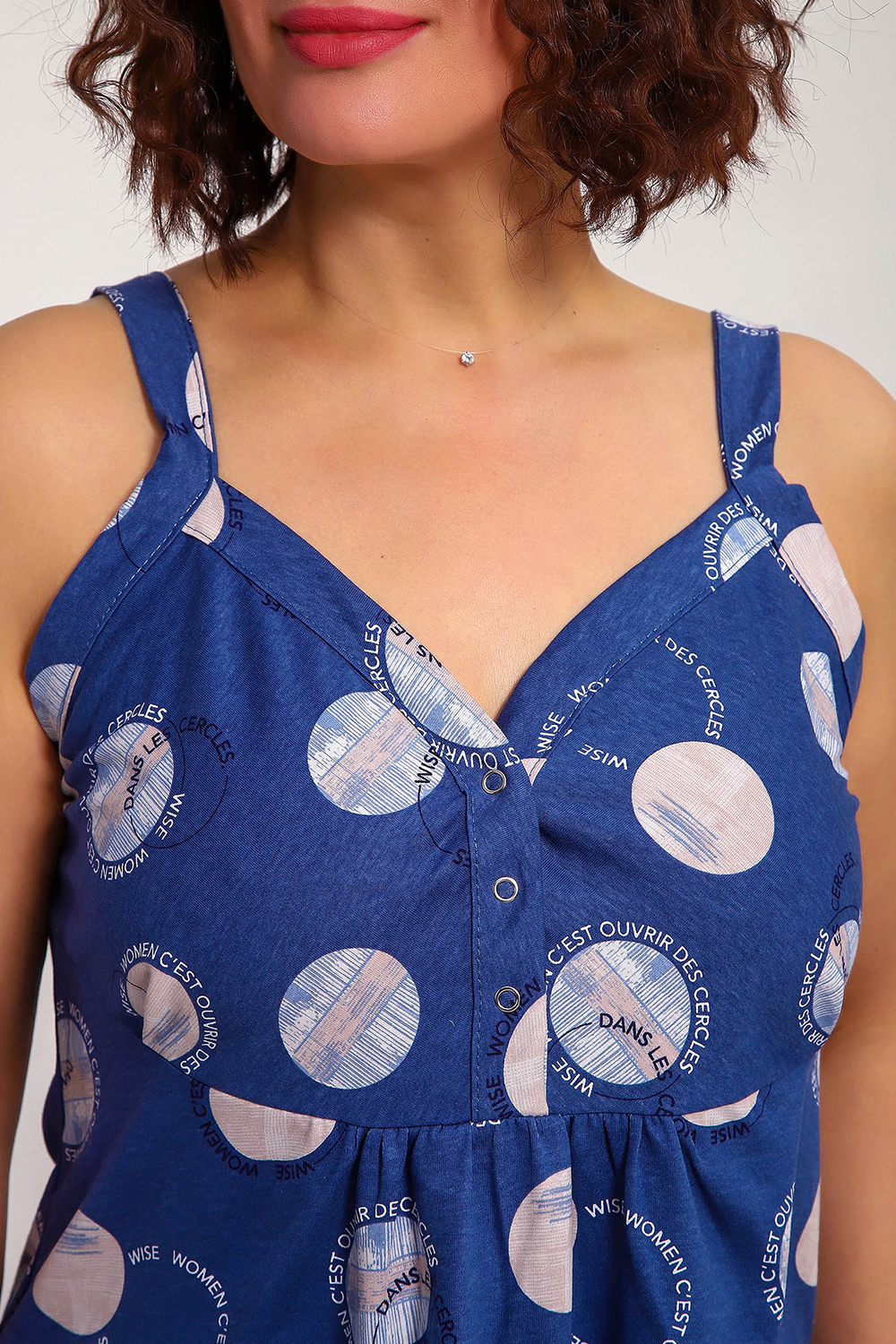 Сорочка женская без рукава на широких брителях . Данная модель выполнена из трикотажного полотна кулирка ( хлопок 100%). Полочка отрезная с кнопками. Горловина обработана широкой окантовкой. Отличная модель для сна и кормления.