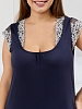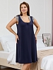 Сорочка женская из гладкокрашеного вискозного трикотажного полотна, свободного покроя, слегка расширенная к низу, с втачными рукавами - «крылышками», выполненными из кружева и втачанными в верхние части пройм. Расширенная иуглубленная горловина с кружевными отделочными деталями и сборкой по центру, окантована основным материалом.