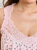 Сорочка женская из трикотажного полотна «кулирка» слегка расширенная книзу, без рукавов. Кружевные детали кокетки на полочке образуют V-ный вырез горловины. На нижней части полочки по шву притачивания кружевной кокетки заложены симметричные складки, проймы окантованы основным материалом.