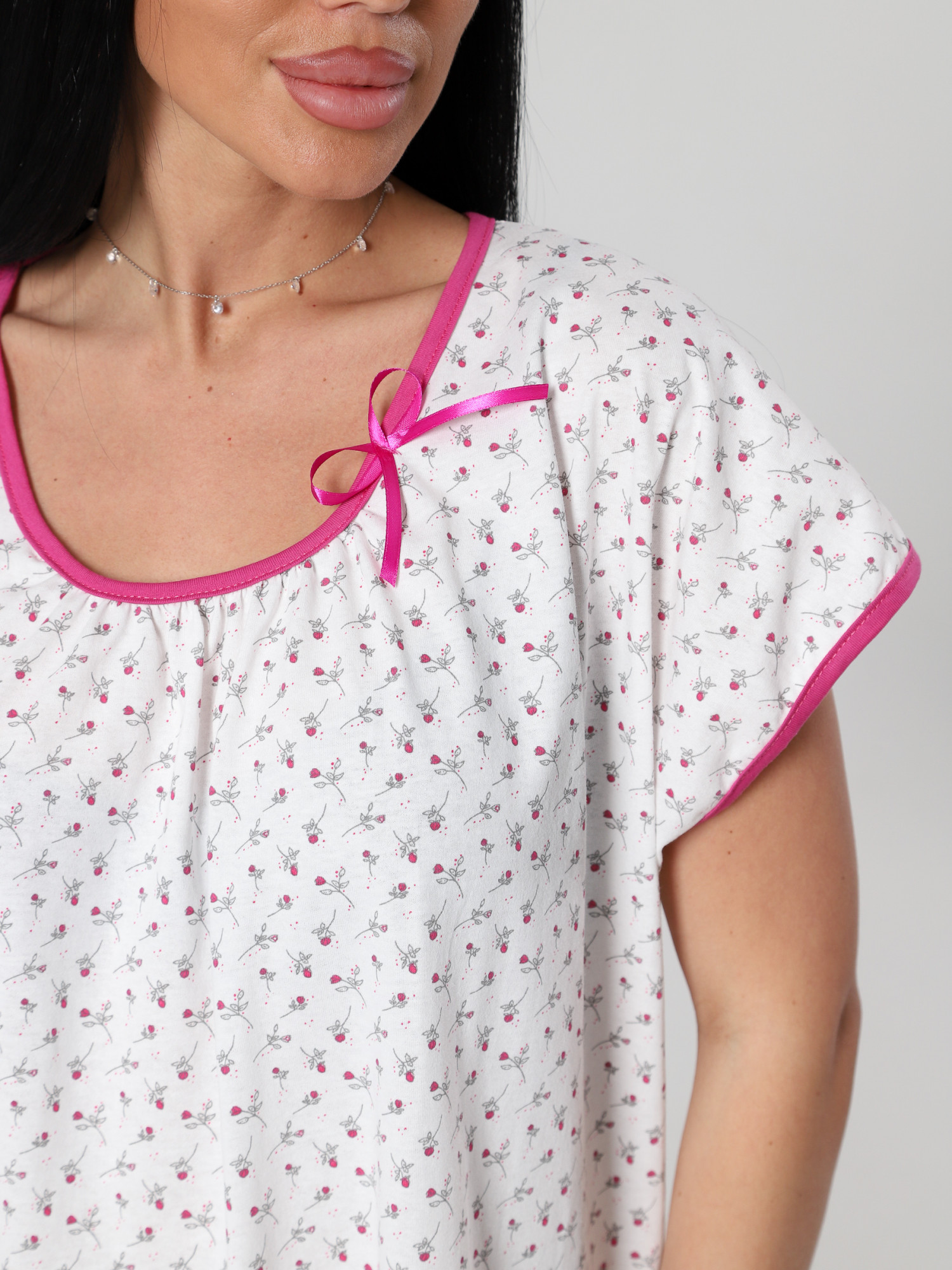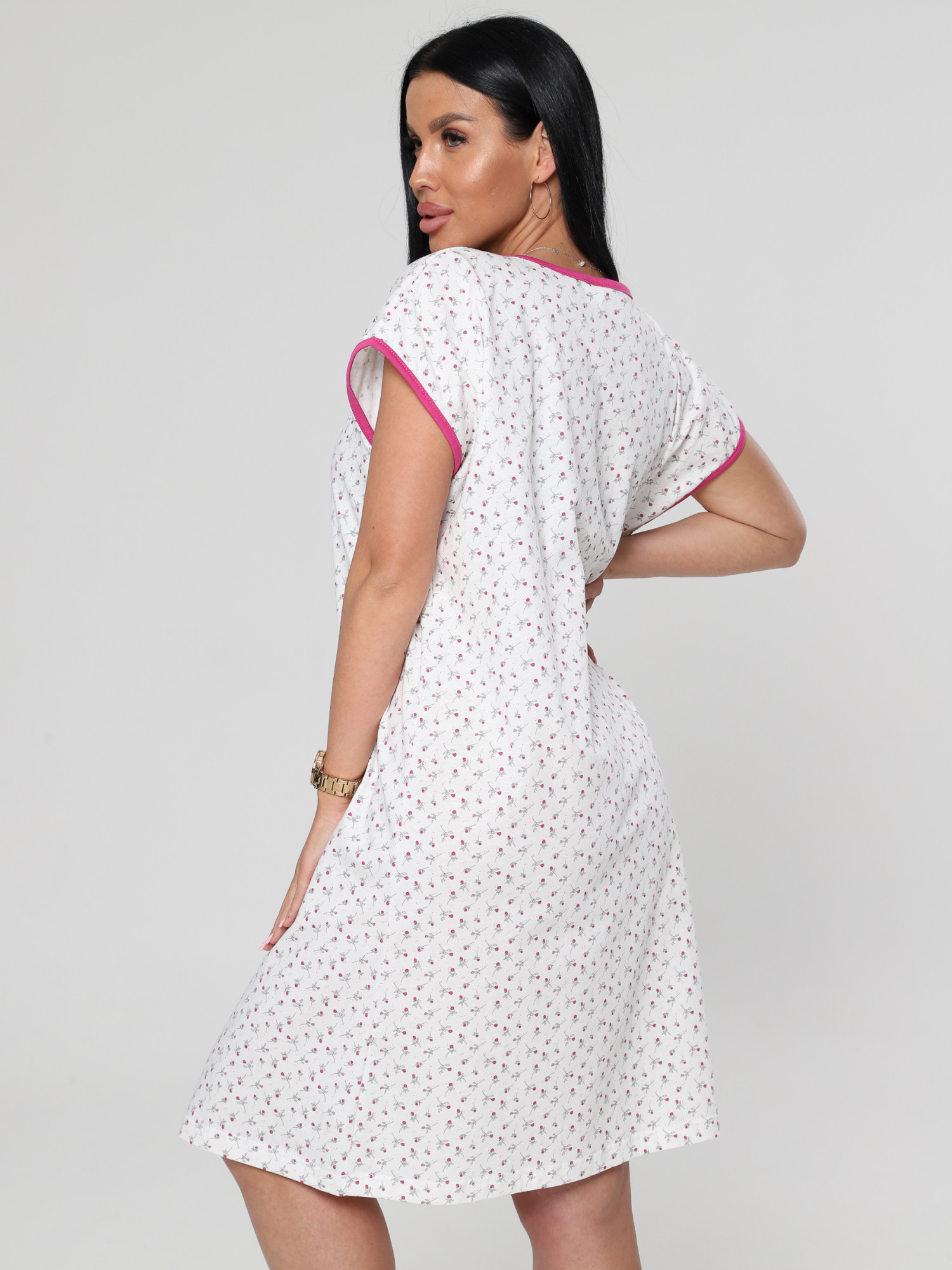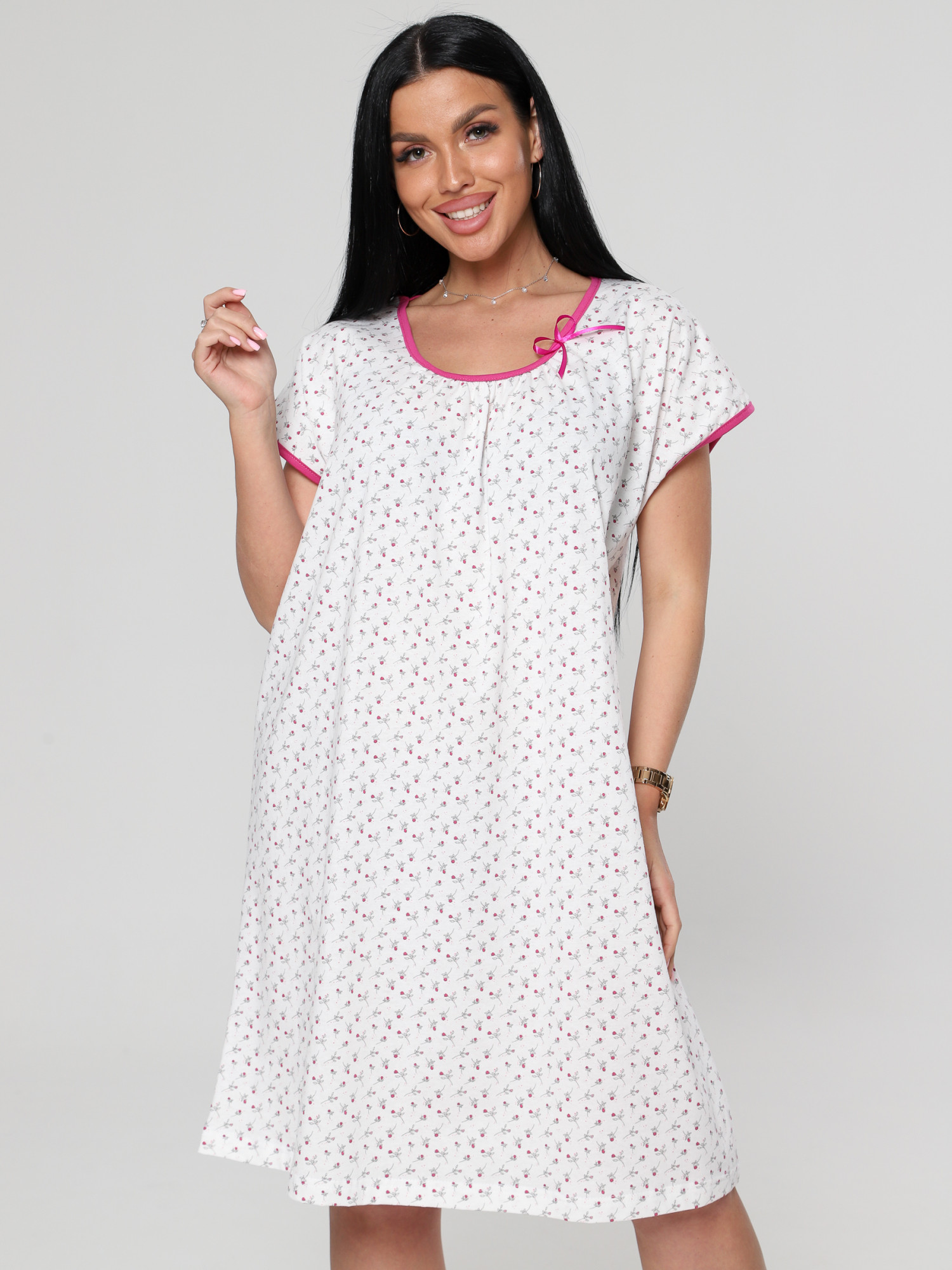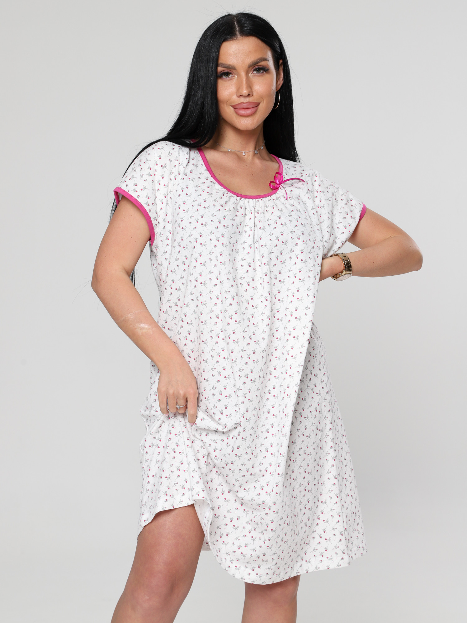 Женская ночная сорочка М-027 / бело-розовый