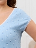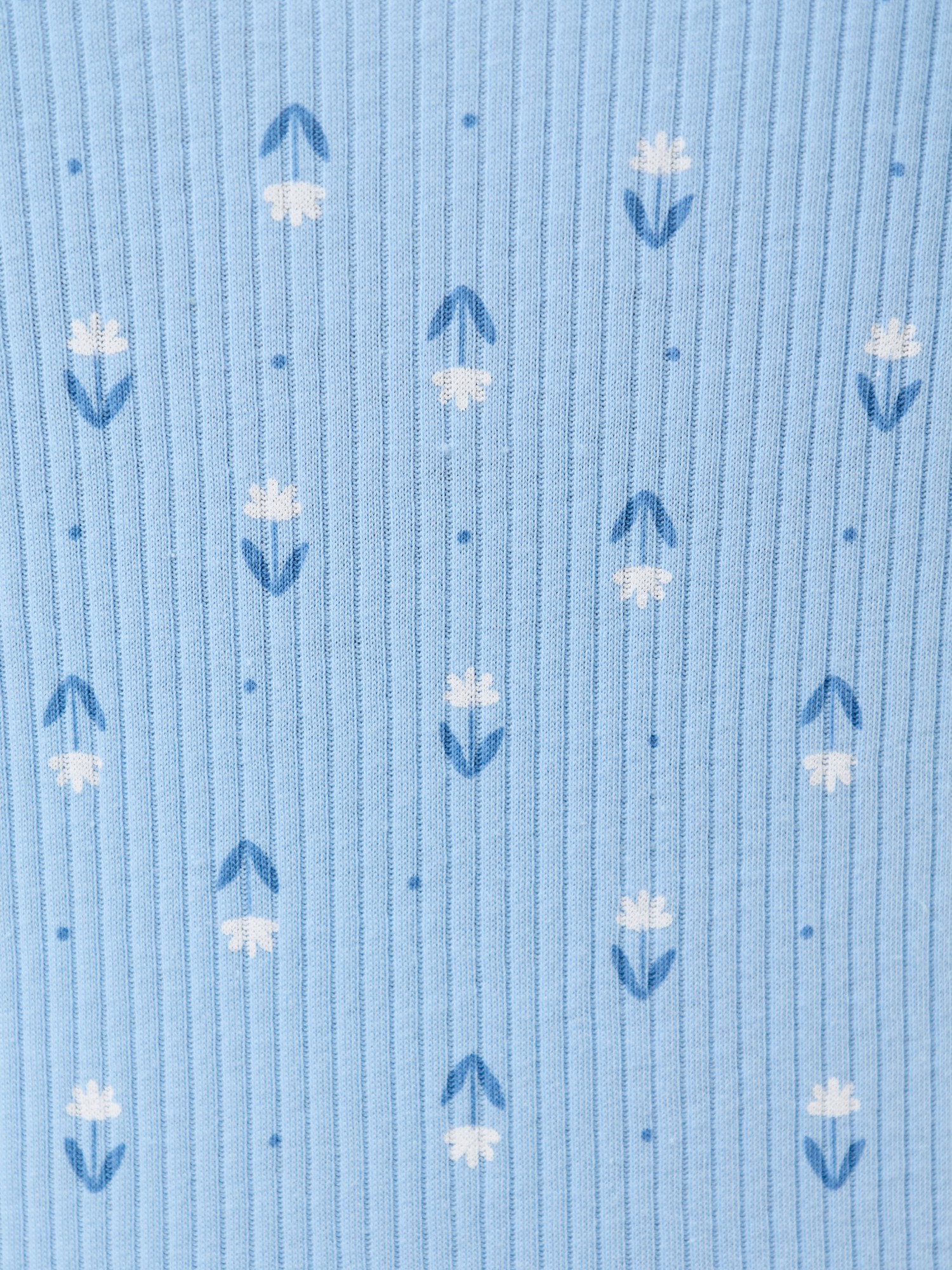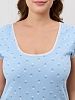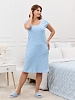 Сорочка женская из трикотажного полотна «кашкорсе» с набивным рисунком, слегка расширенная книзу, с короткими втачными рукавами, углубленной формой горловины. Низ изделия и нижние срезы рукавов обработаны эластичной тесьмой с фасонным краем.