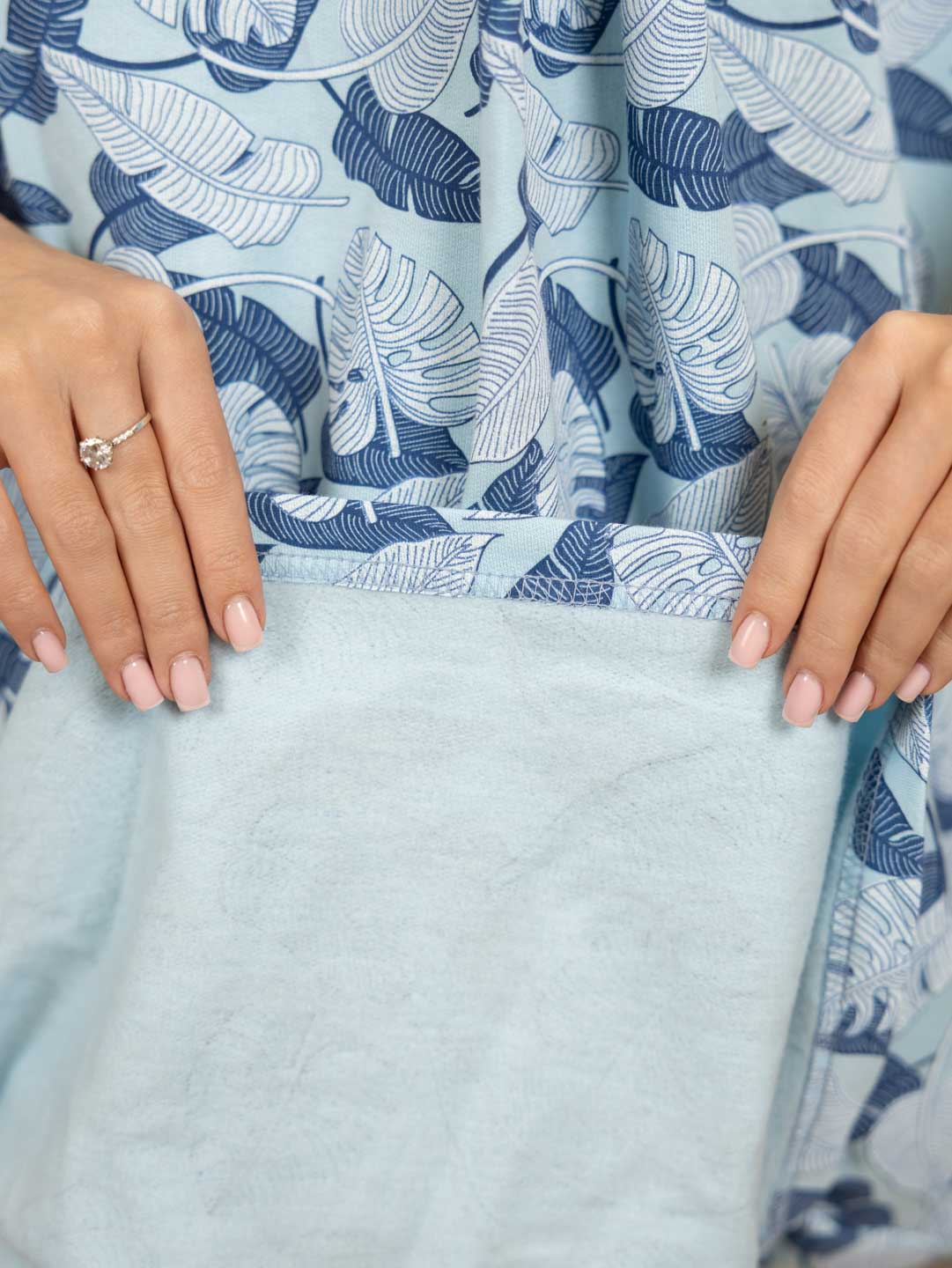 Женская ночная сорочка длиной ниже колена с рукавом 3/4 и округлой горловиной на пуговицах. Материал имеет притную к телу изнанку, благодаря которой вы не замерзните даже в самые морозные дни.
