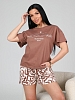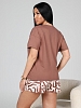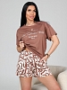 Пижама "Джемма" из трикотажного полотна "кулирка" состоит из футболки и шорт. Футболка из гладкокрашенного трикотажного полотна свободного покроя со спущенной линией плеча, короткими втачными рукавами, горловиной овальной формы, обработанной втачной планкой. Полочка украшена принтом. Шорты из набивного трикотажного полотна свободного покроя, на притачном поясе с эластичной лентой и карманами в боковых швах.