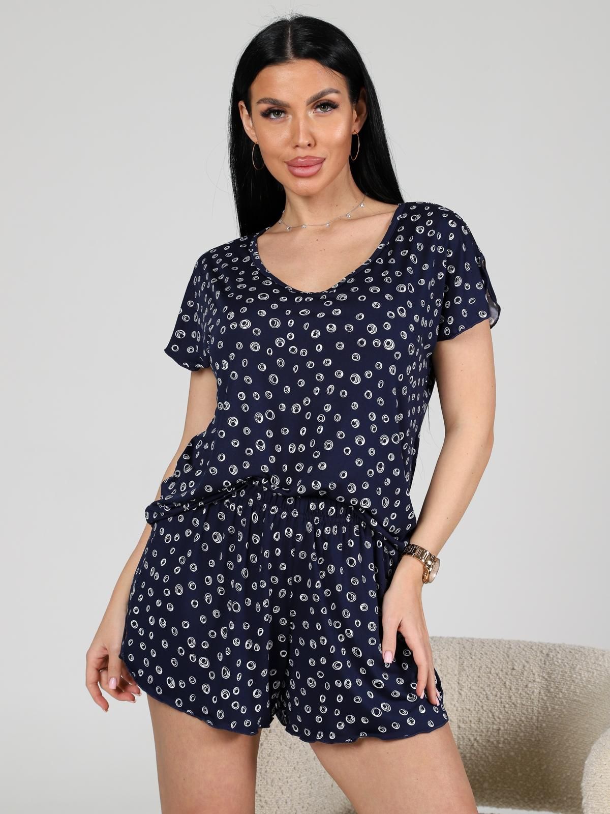 Женская пижама с шортами из масла — это комплект домашней одежды, состоящий из футболки и шорт, изготовленных из ткани «масло». Это трикотажное полотно с характерной гладкой и шелковистой поверхностью, которое хорошо тянется и комфортно прилегает к телу.