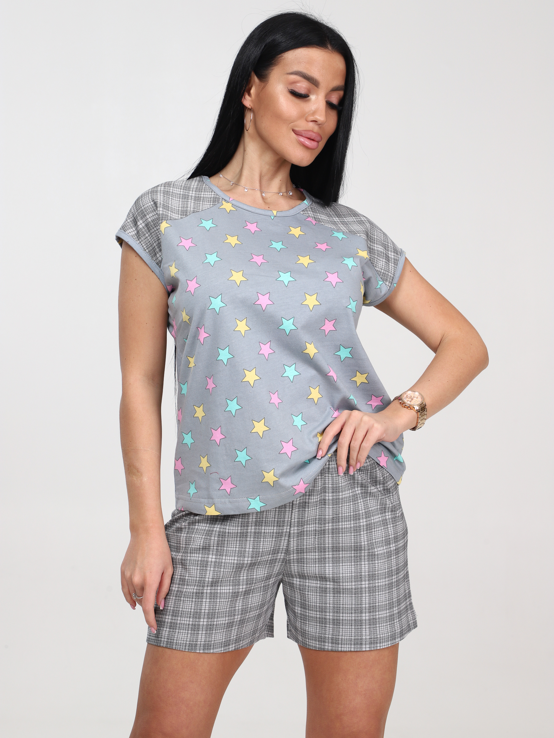 Женский трикотажный костюм кк-39 - это домашний комплект с шортами, состоящий из 100% хлопка, который позволит Вашей коже дышать и не будет стеснять ваши движения благодаря мягкой трикотажной ткани. Домашний женский костюм очень удобен: футболка свободного кроя и шорты на мягкой резинке не доставят неудобств при ежедневной носке. На футболке в качестве декора приятный печатный принт. Костюм с шортами универсален, его можно использовать и как женскую пижаму или пижаму для девушек, подростков. Трикотажный костюм подойдет на каждый день, будет удобен в дороге или на отдыхе.