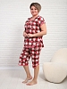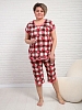 Женская пижама из кулирки с бриджами — это комплект домашней одежды, состоящий из футболки и бриджей, изготовленных из тонкого трикотажного полотна. Кулирка — материал из 100% хлопка, который хорошо пропускает воздух, приятен к телу и подходит для сна и отдыха.