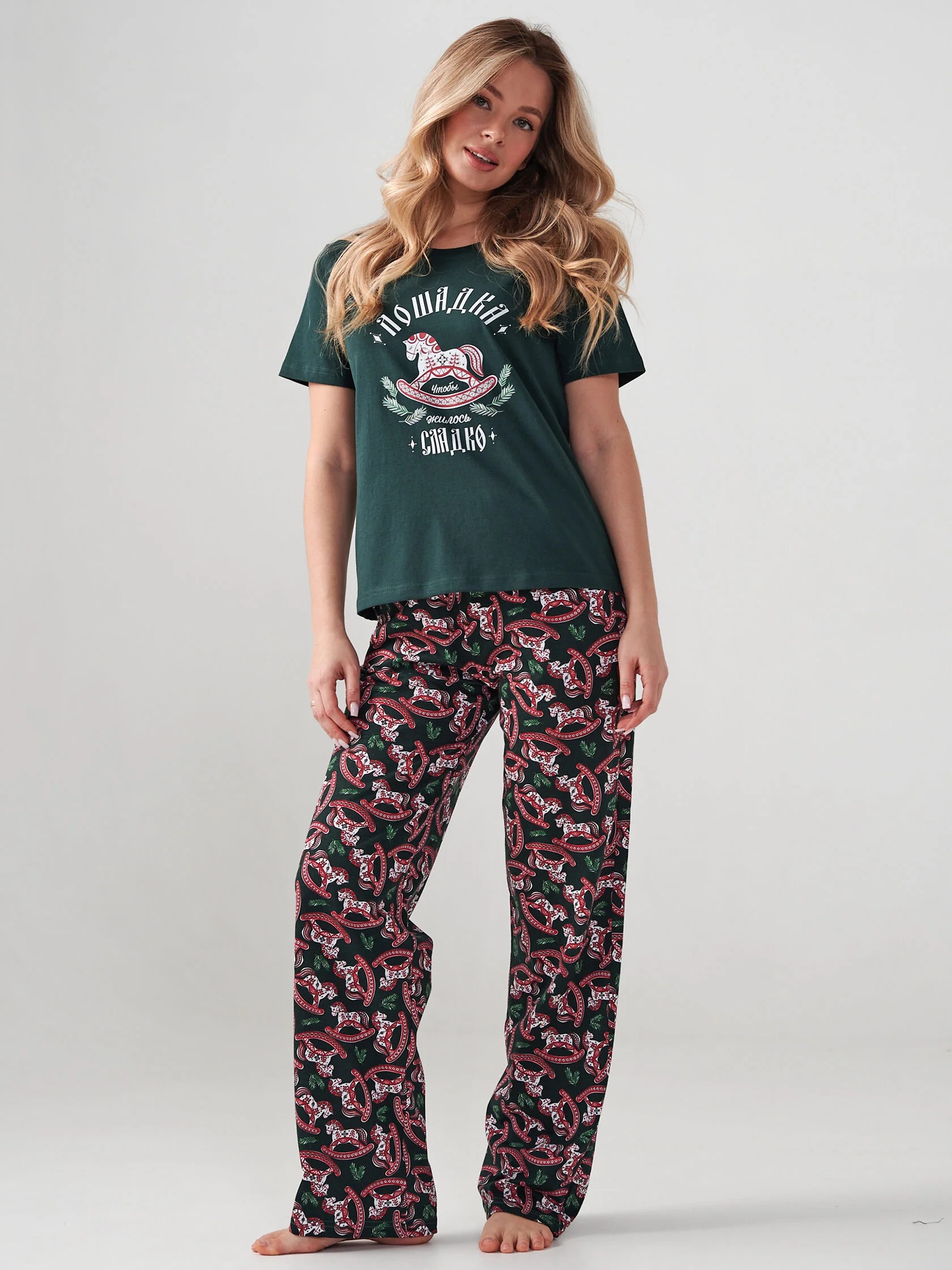 Женская пижама "Лошадка" 2416-К / Зеленый