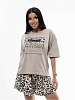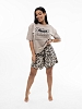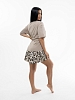 Стильная молодежная пижама с футболкой и юбкой-шортами. Футболка с О-образной горловиной, спущенной линией плеча и печатью спереди. Юбка-шорты имеют трапециевидный крой, выполнены без карманов, на резинке 2см. Костюм сшит из турецкой кулирки, которая отличается мягкостью.