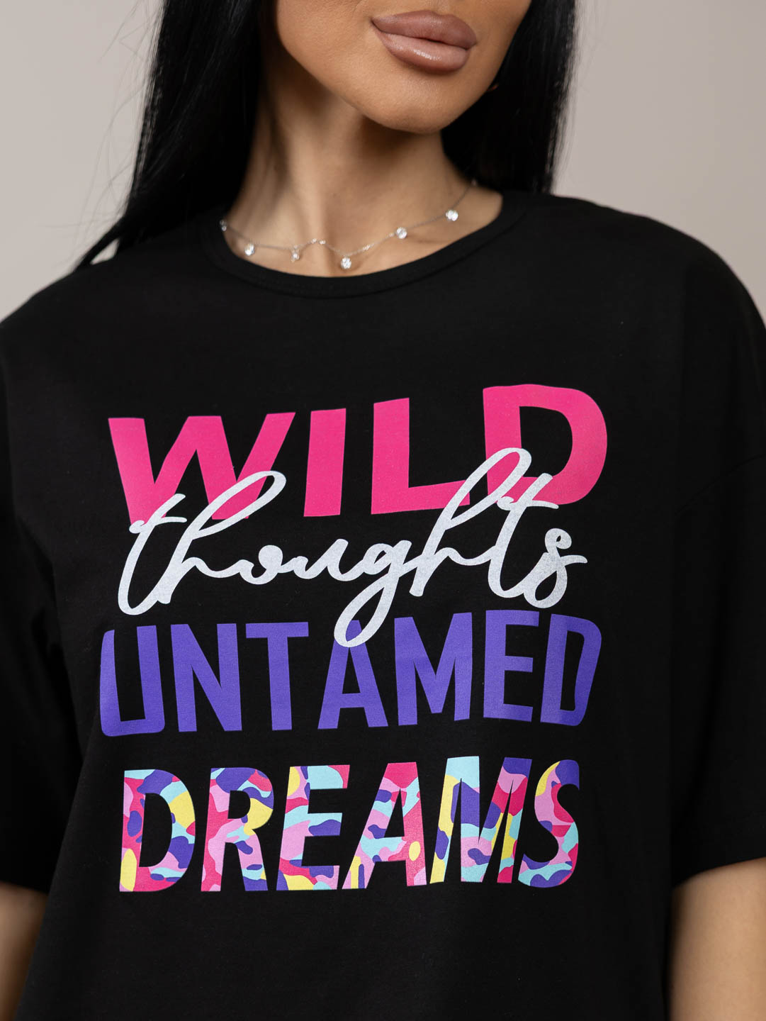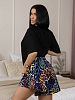 Стильная молодежная пижама с футболкой и юбкой-шортами. Футболка с О-образной горловиной, спущенной линией плеча и печатью спереди. Юбка-шорты имеют трапециевидный крой, выполнены без карманов, на резинке 2см. Костюм сшит из турецкой кулирки, которая отличается мягкостью.