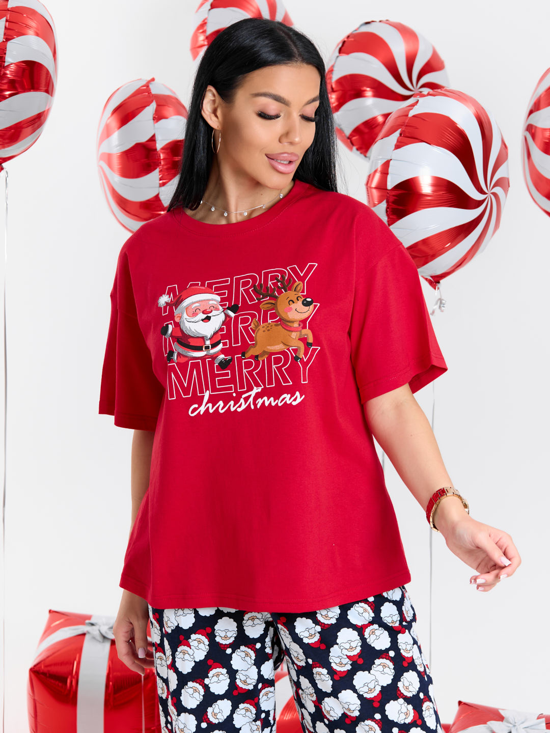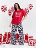Очаровательная новогодняя пижама-двойка - идеальный выбор для создания праздничного настроения в домашней обстановке! В комплект входят: • Футболка с новогодним дизайном • Брюки палаццо Этот очаровательный комплект станет незабываемым подарком для себя или близких на Новый год. Сочетание праздничного дизайна, комфорта и качества делает эту пижаму настоящим сокровищем для тех, кто ценит уют и стиль в домашней одежде. Создайте волшебную атмосферу праздника с нашей пижамой.