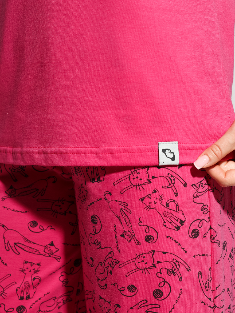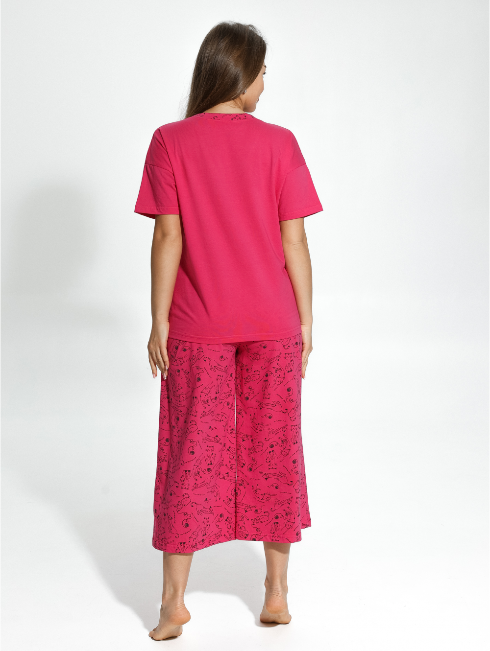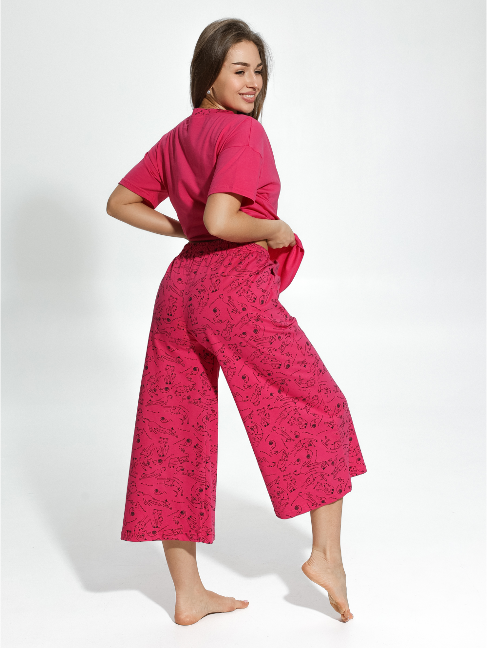 Модная пижама - это комфортная одежда для отдыха, которую по достоинству оценят. Пижама Мурка состоит из широких штанов кюлотов с высокой посадкой и футболки с коротким рукавом. Удобные брюки на резинке на талии не стесняют движения.