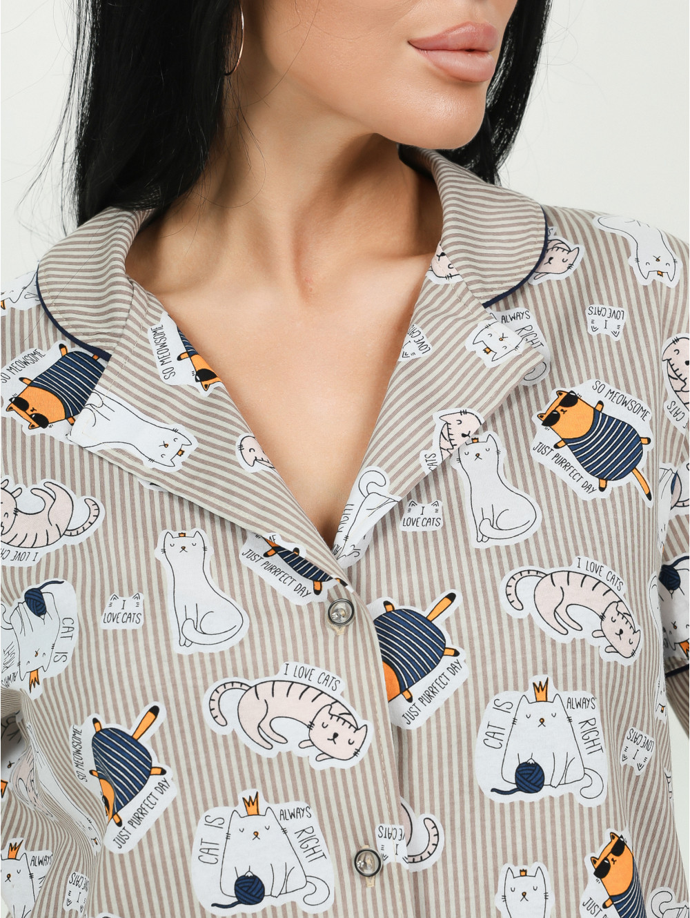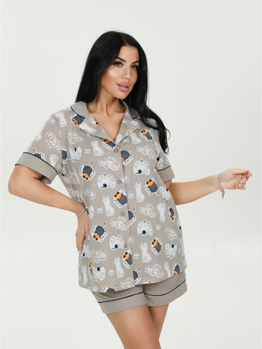 Пижама женская Нимфа состоит из жакета и шорт. Жакет прямого силуэта. Сшита из натурального хлопка, имеет высокую воздухопроницаемость, хорошо впитывает влагу.