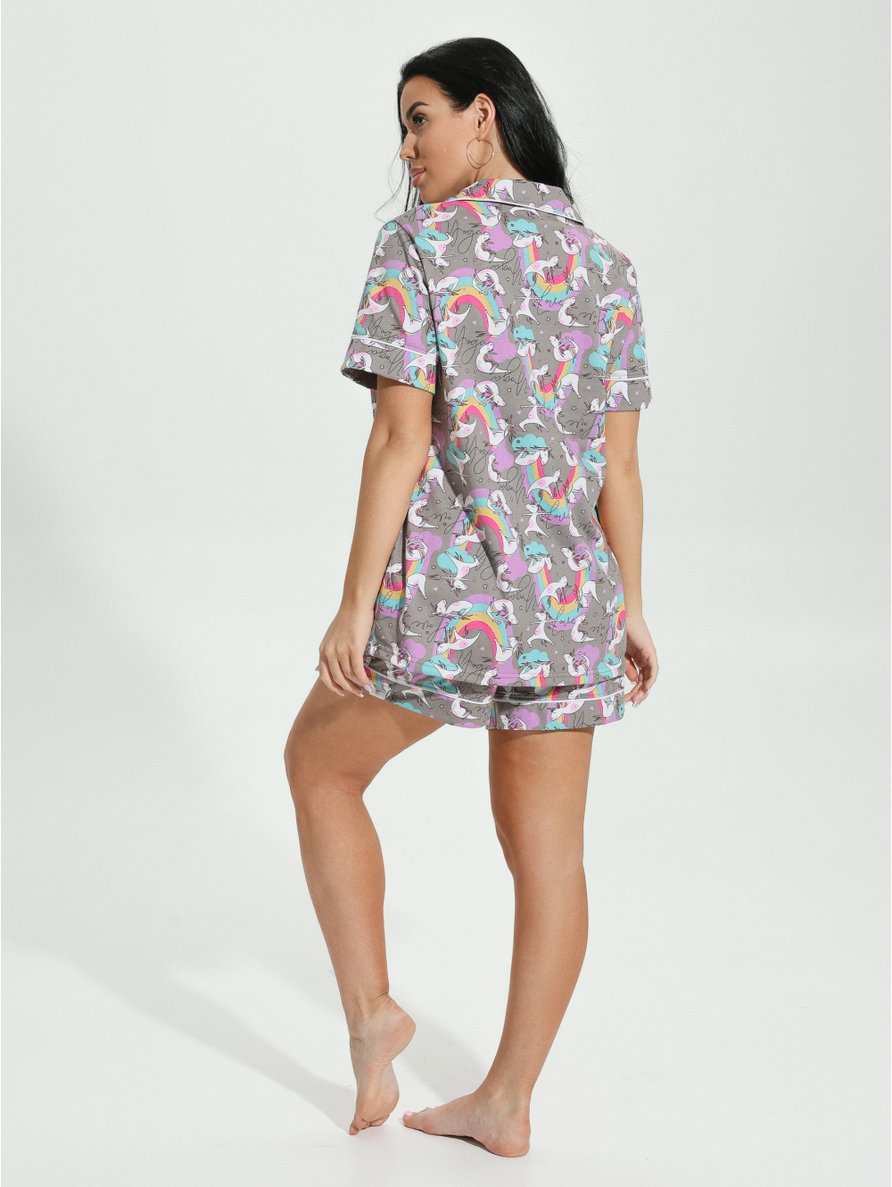 Пижама женская Нимфа состоит из жакета и шорт. Жакет прямого силуэта. Сшита из натурального хлопка, имеет высокую воздухопроницаемость, хорошо впитывает влагу.