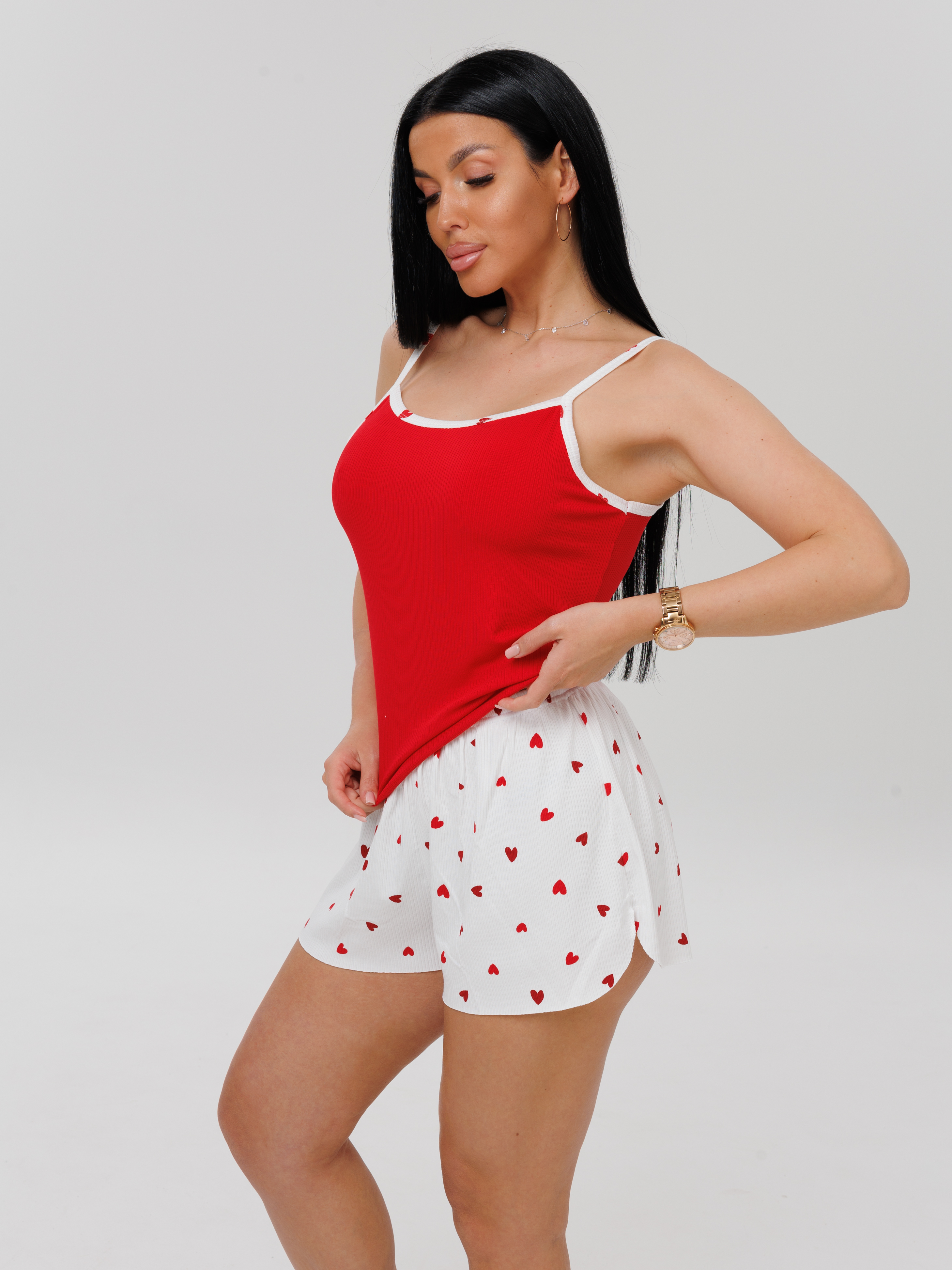 Женская пижама П-101(Л) / Белый кант (сердечки)