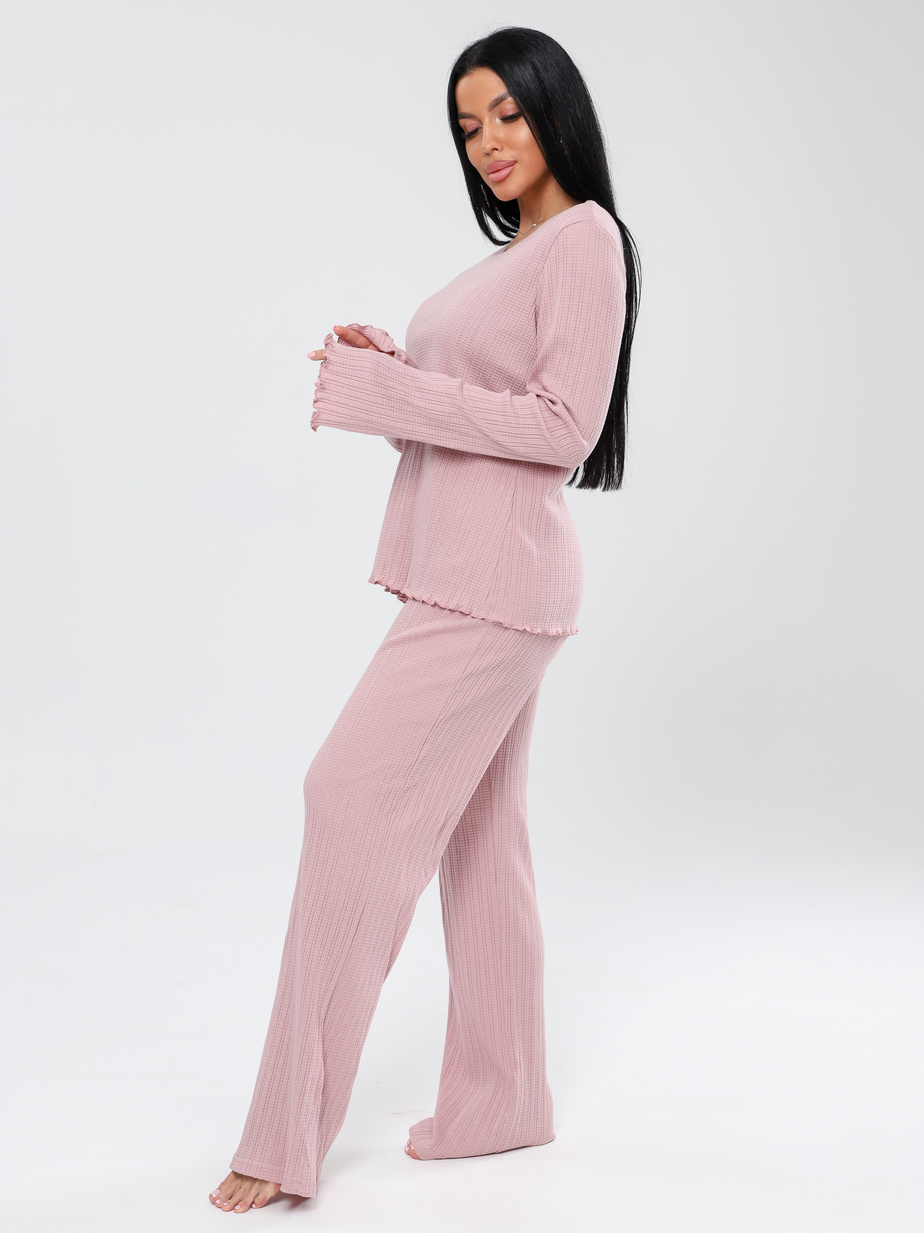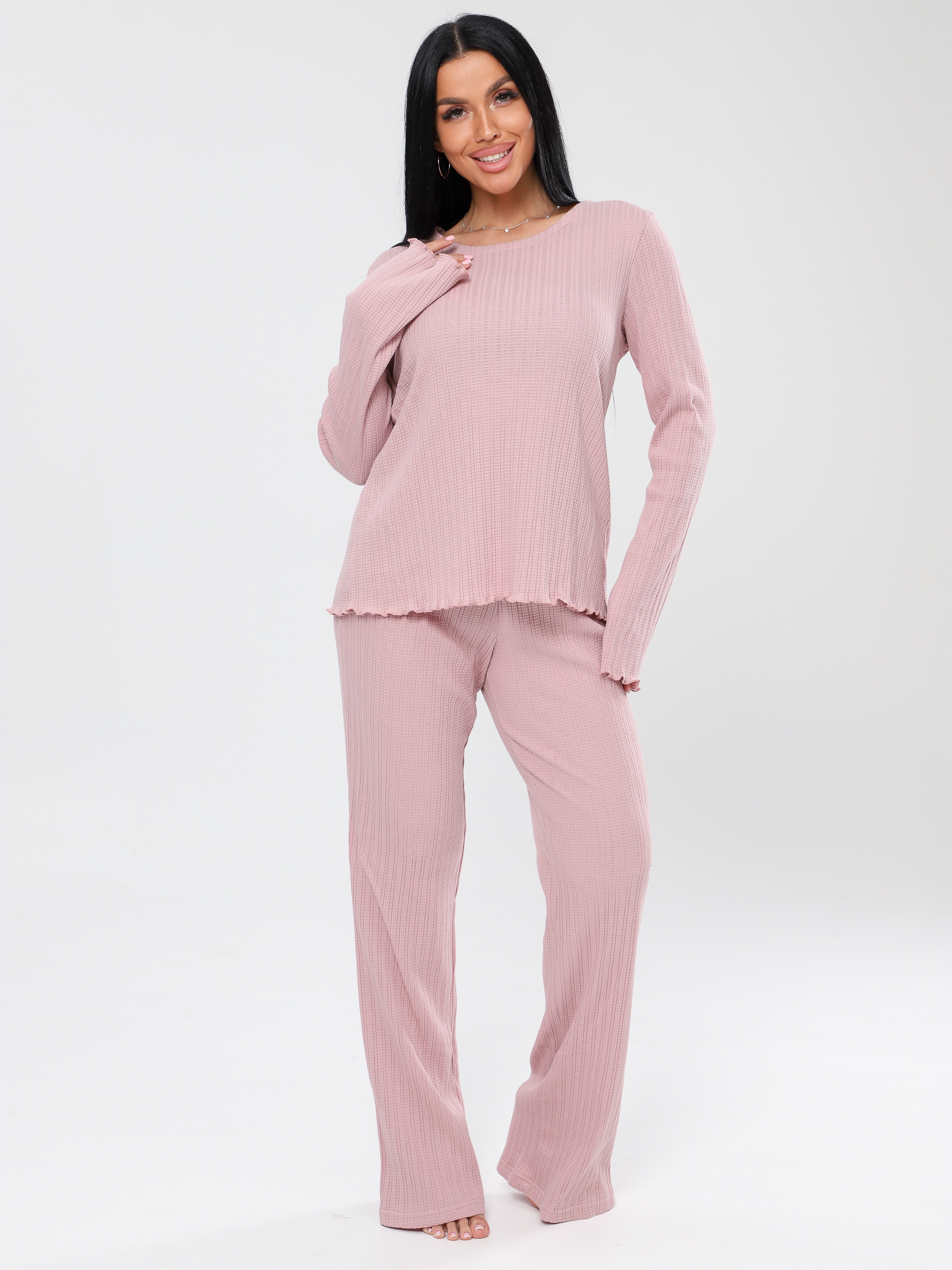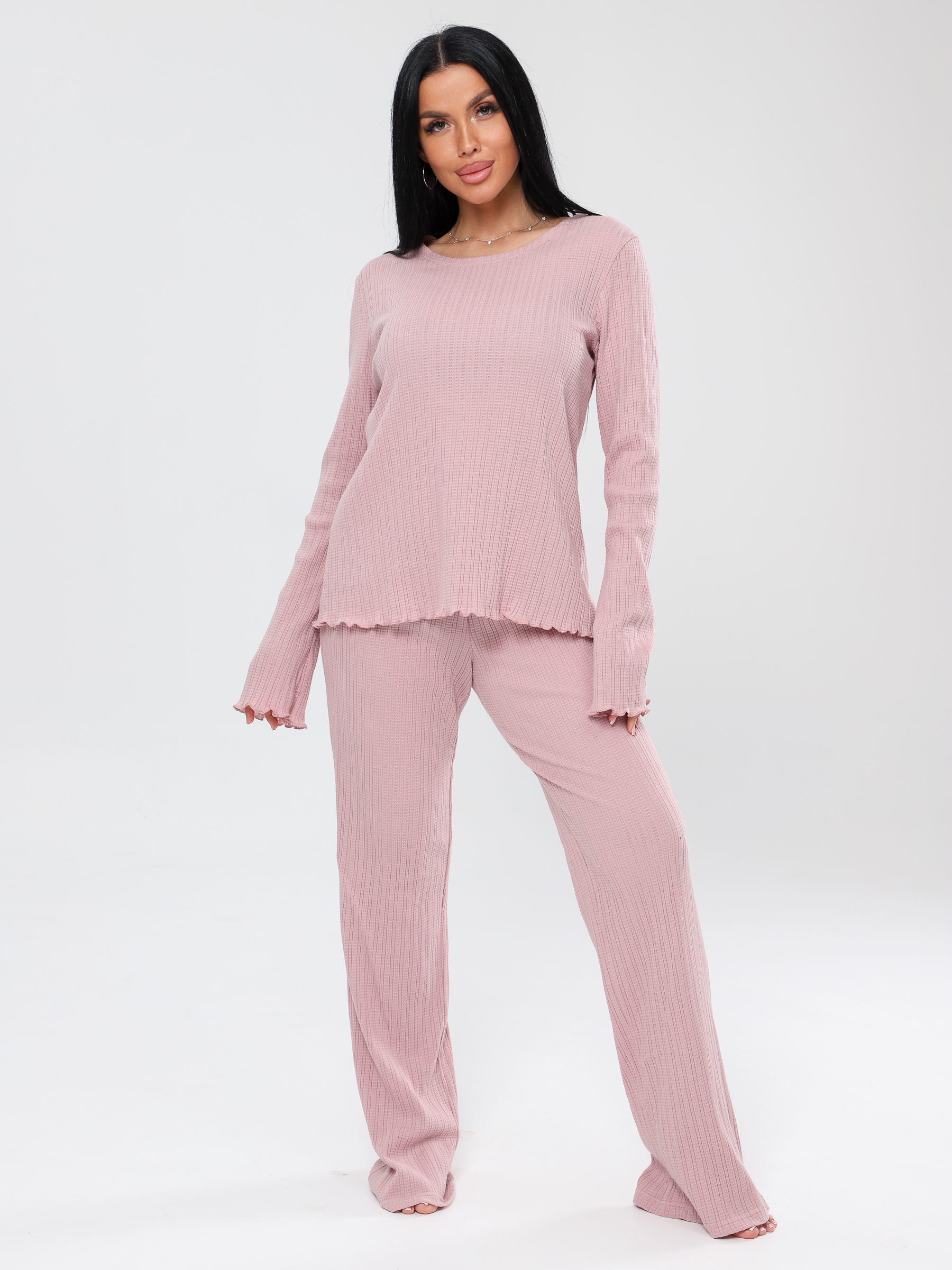 Женская пижама из рибаны — это комфортный и стильный вариант домашней одежды, изготовленный из хлопкового трикотажа. Такая ткань обеспечивает свободу движений и подходит для разных типов фигуры.