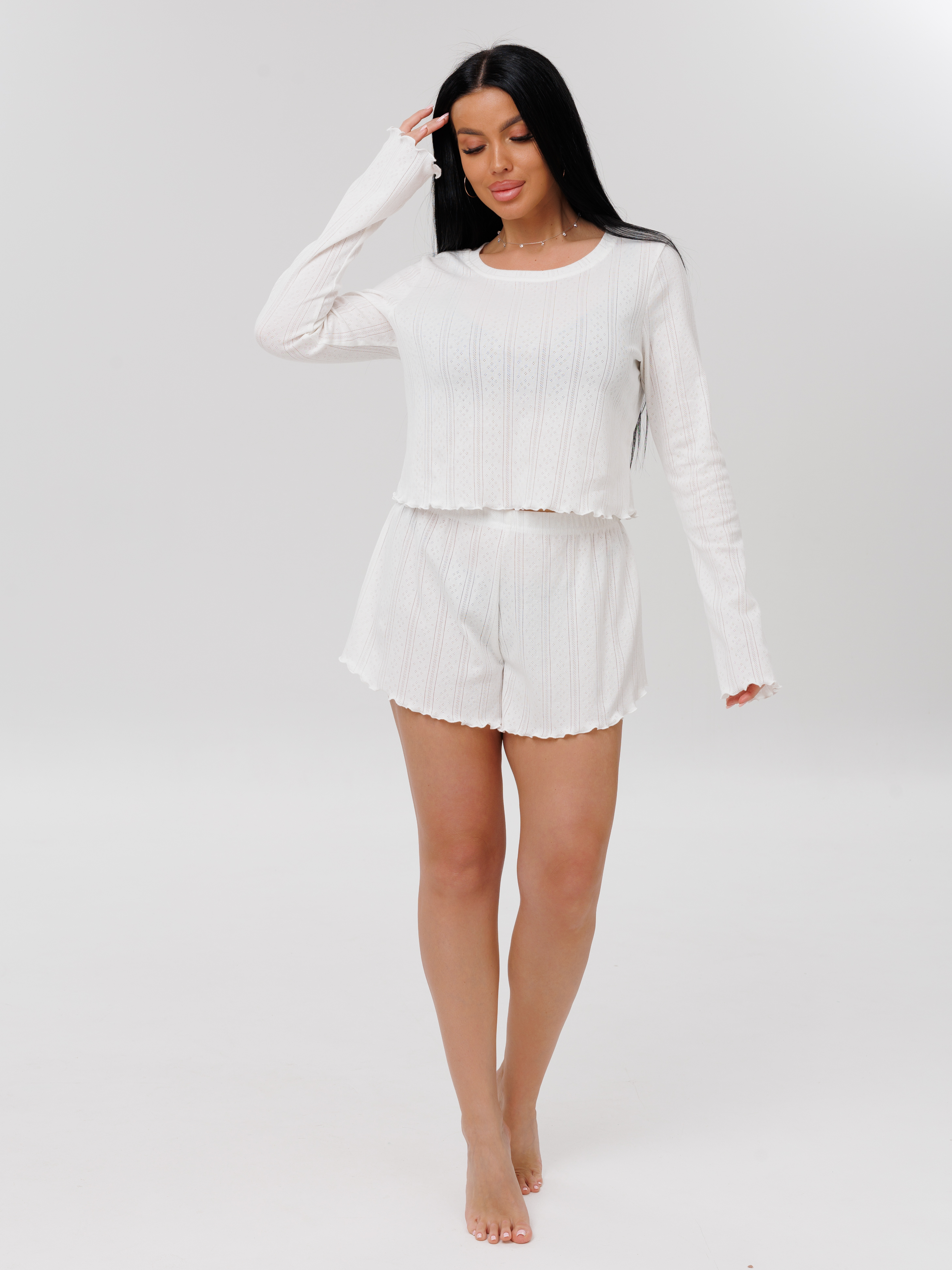 Женская пижама из рибаны — это комфортный и стильный вариант домашней одежды, изготовленный из хлопкового трикотажа. Такая ткань обеспечивает свободу движений и подходит для разных типов фигуры.