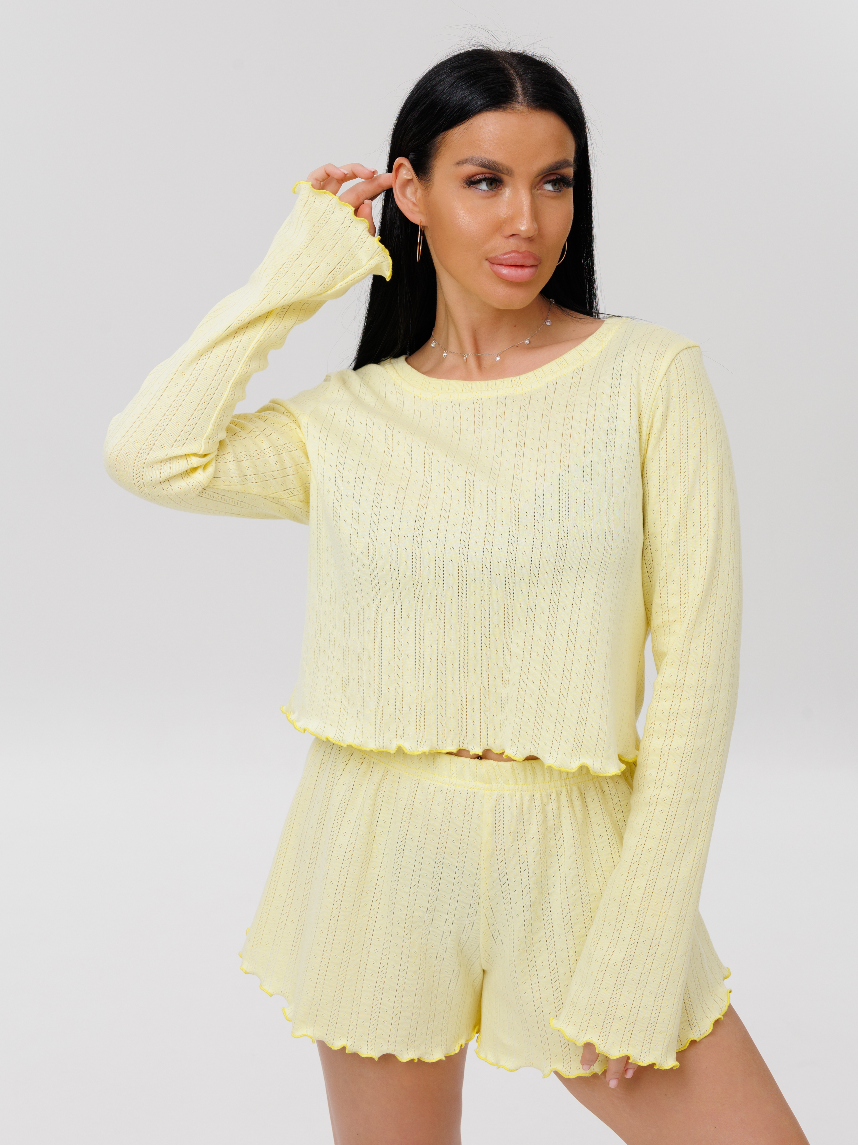 Женская пижама из рибаны — это комфортный и стильный вариант домашней одежды, изготовленный из хлопкового трикотажа. Такая ткань обеспечивает свободу движений и подходит для разных типов фигуры.