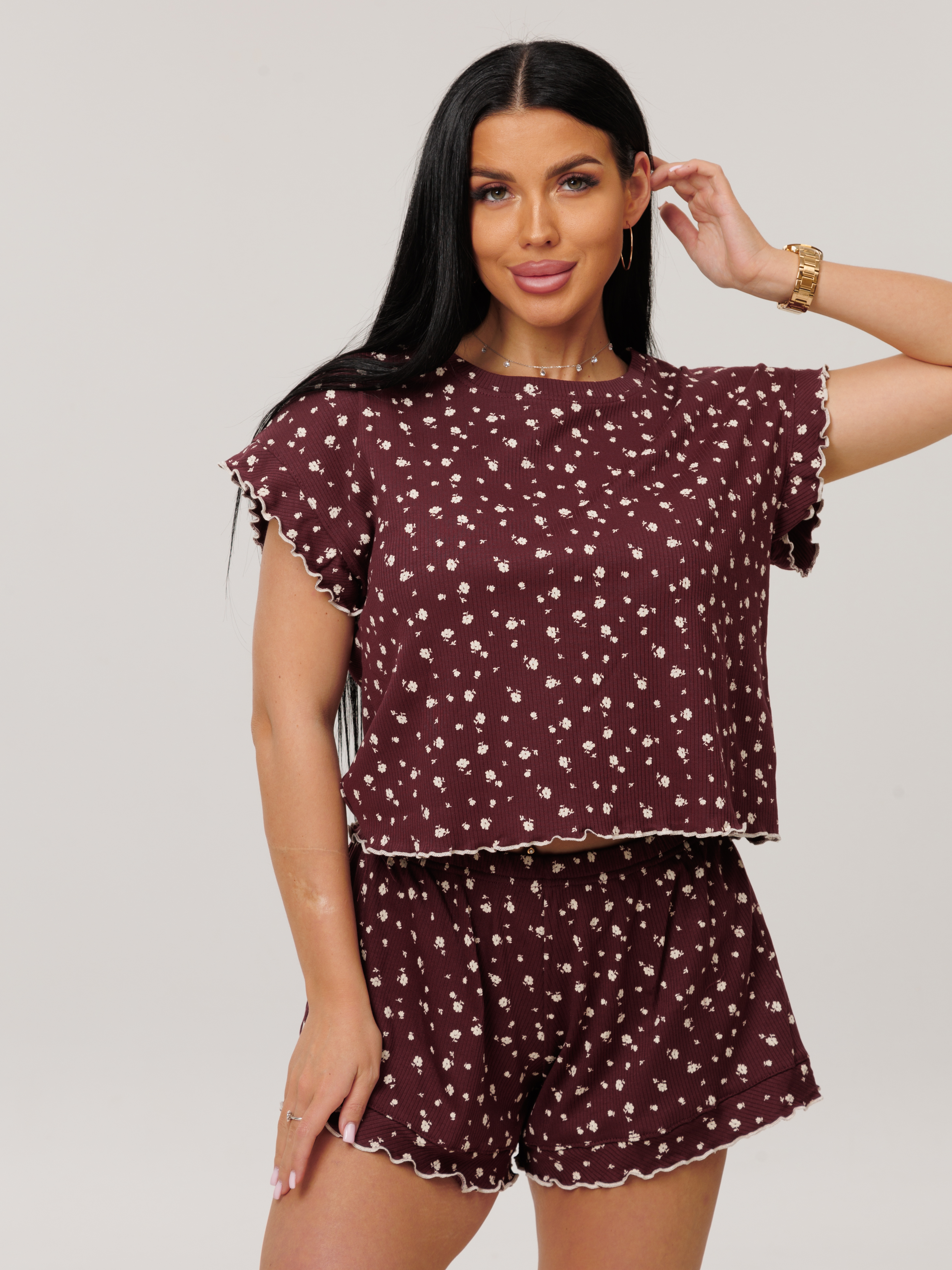 Женская пижама из лапши — это комфортный и стильный вариант домашней одежды, изготовленный из эластичного трикотажа с рубчатой текстурой. Такая ткань хорошо тянется, обеспечивает свободу движений и подходит для разных типов фигуры.