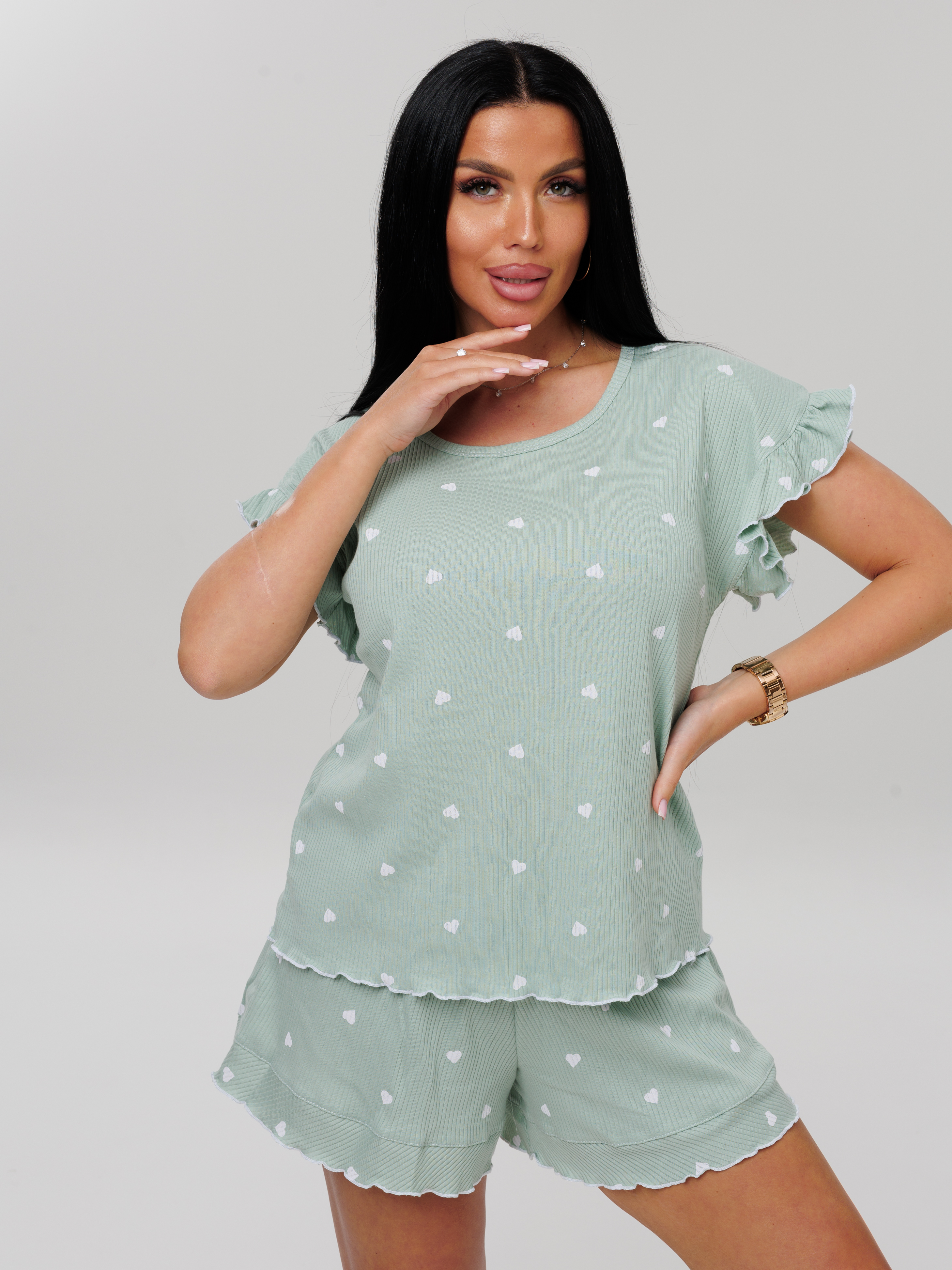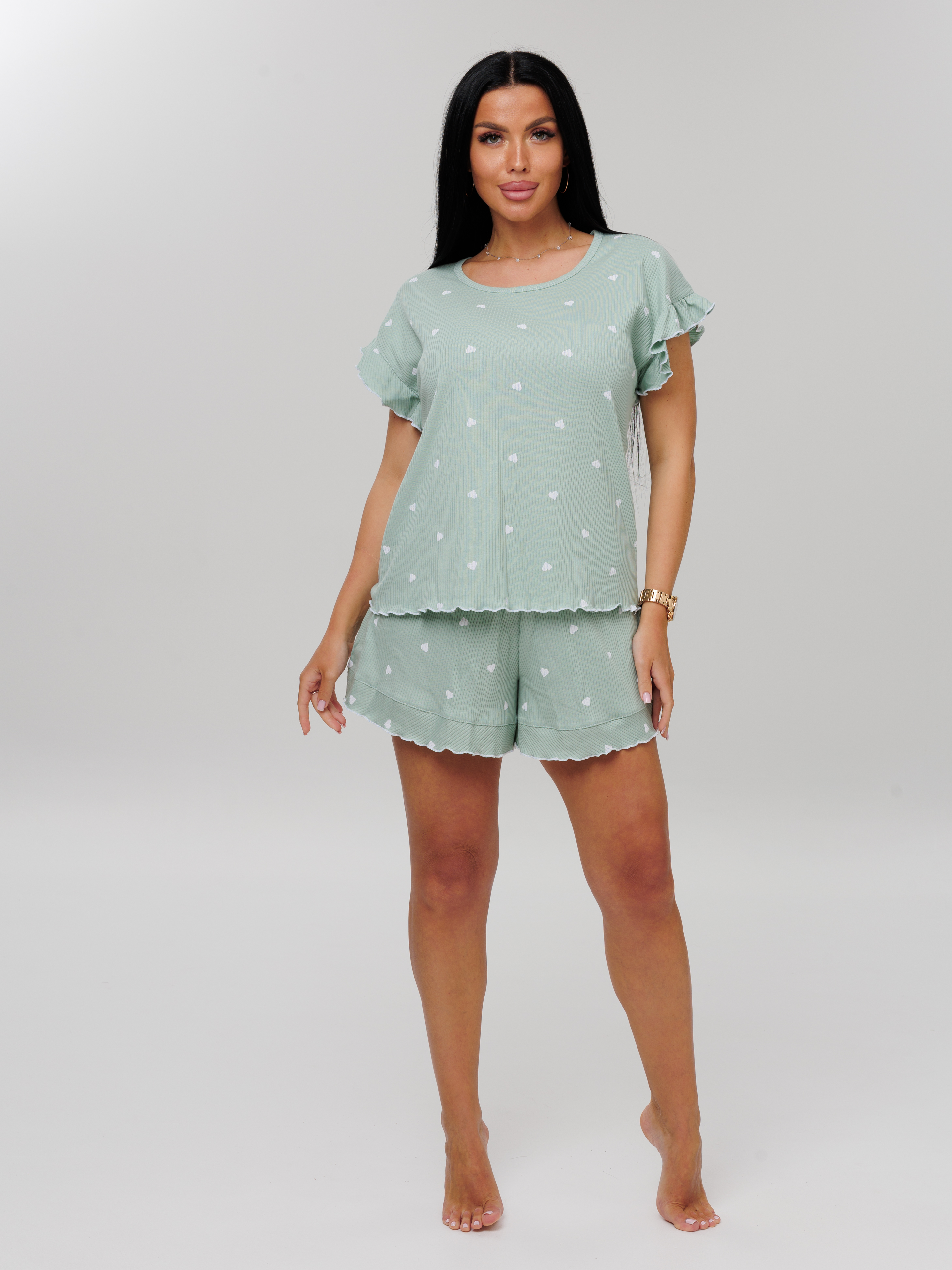 Женская пижама П-110(Каш) / Серо-зеленый (сердечки)