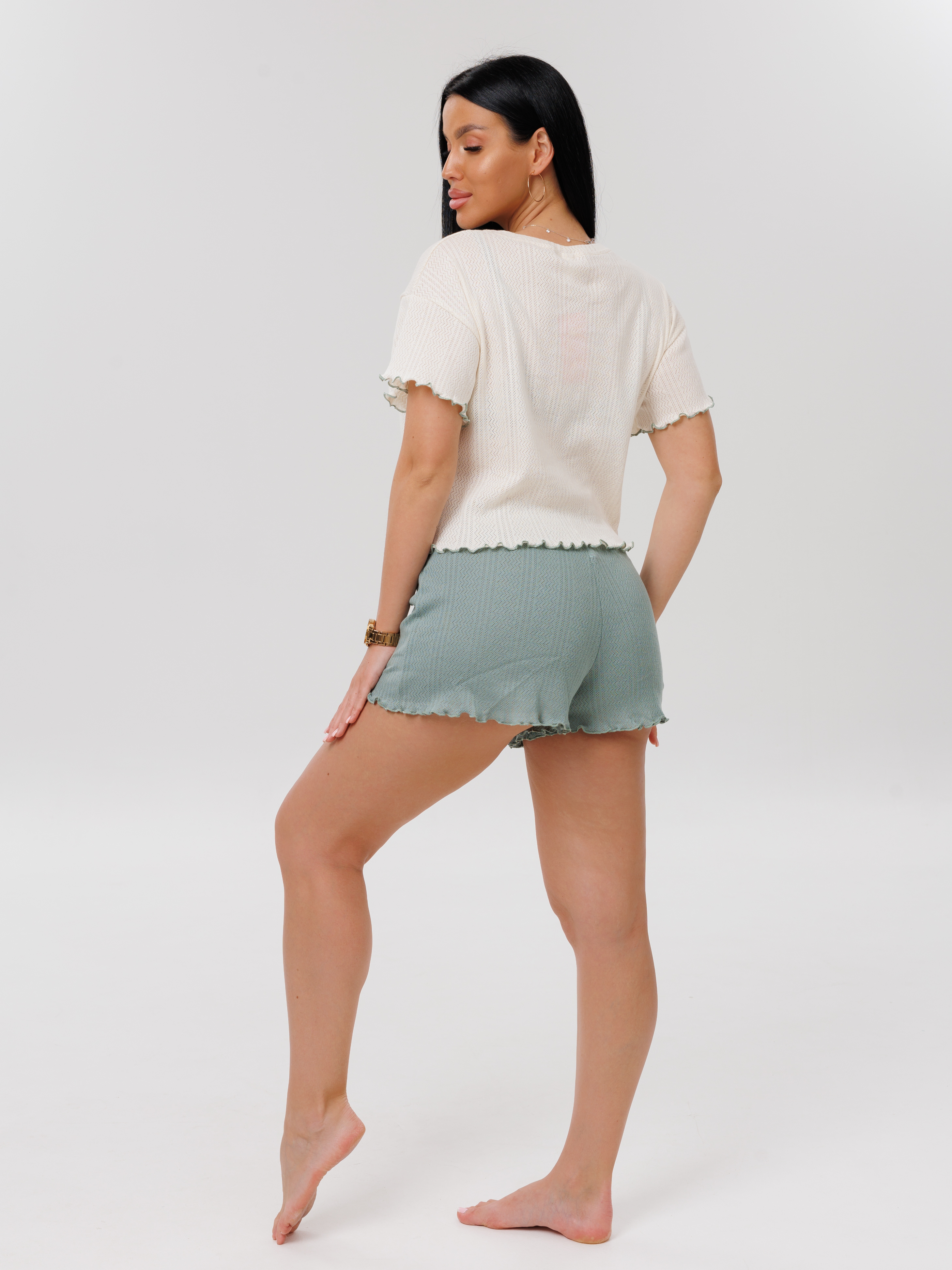 Женская пижама с шортами из трансферной рибаны — это комплект домашней одежды, изготовленный из трикотажного материала с рельефной текстурой. Трансферная рибана — мягкая, гипоаллергенная и дышащая ткань, которая обеспечивает комфорт во время сна и отдыха.