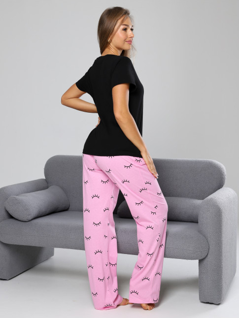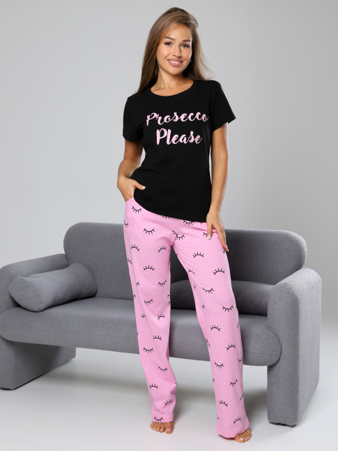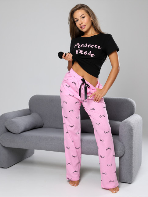 Футболка с принтом, шорты на поясе-резинке с декоративным атласным бантом и двумя внутренними карманами.