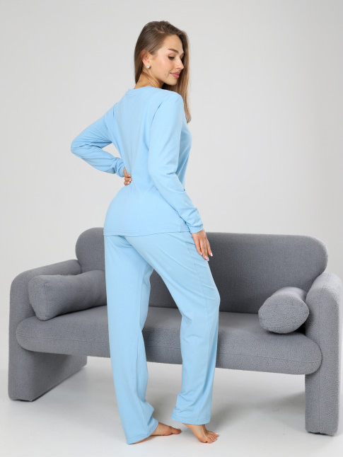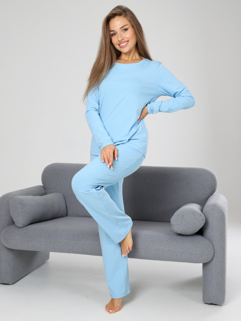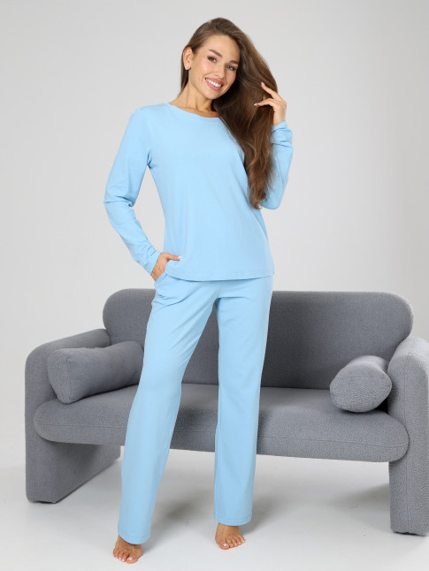 Женский домашний брючный костюм. Лонгслив и прямые брюки с карманами на поясе-резинке. Легкий и комфортный подойдет и как пижама, и как костюм для дома.