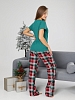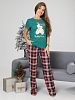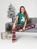 Пижама женская из 100% хлопка (кулирка). Футболка с коротким рукавом и декорирована принтом: пингвин и надпись "Счастье это просто". Брюки прямые, с двумя карманами, на комфортном поясе-резинке, декорированы атласным бантом