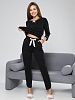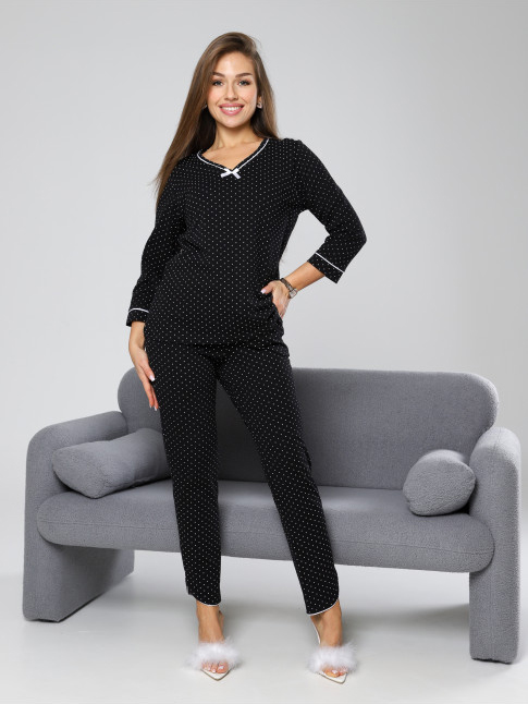 Пижама женская. Кофта с рукавом 3/4, брюки зауженные брюки с двумя внутренними карманами с кантом, боковые вырезы с окантовкой, пояс-резинка декорирован атласным бантом
