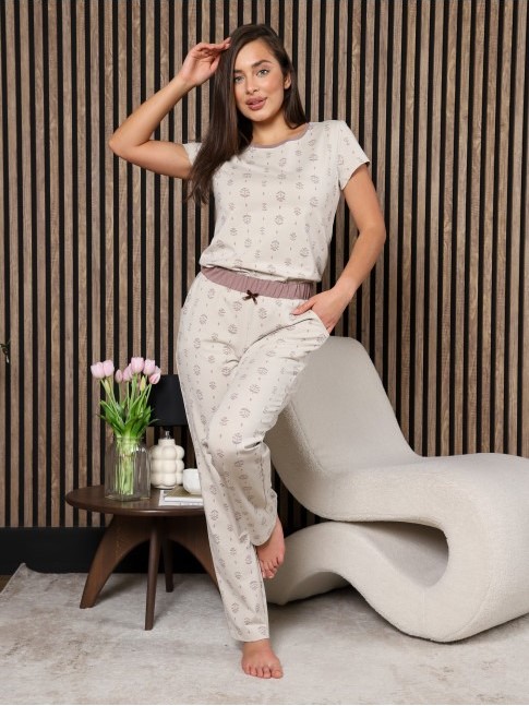 Футболка с кантом и брюки с двумя внутренними карманами, пояс-широкая резинка в цвет канта футболки