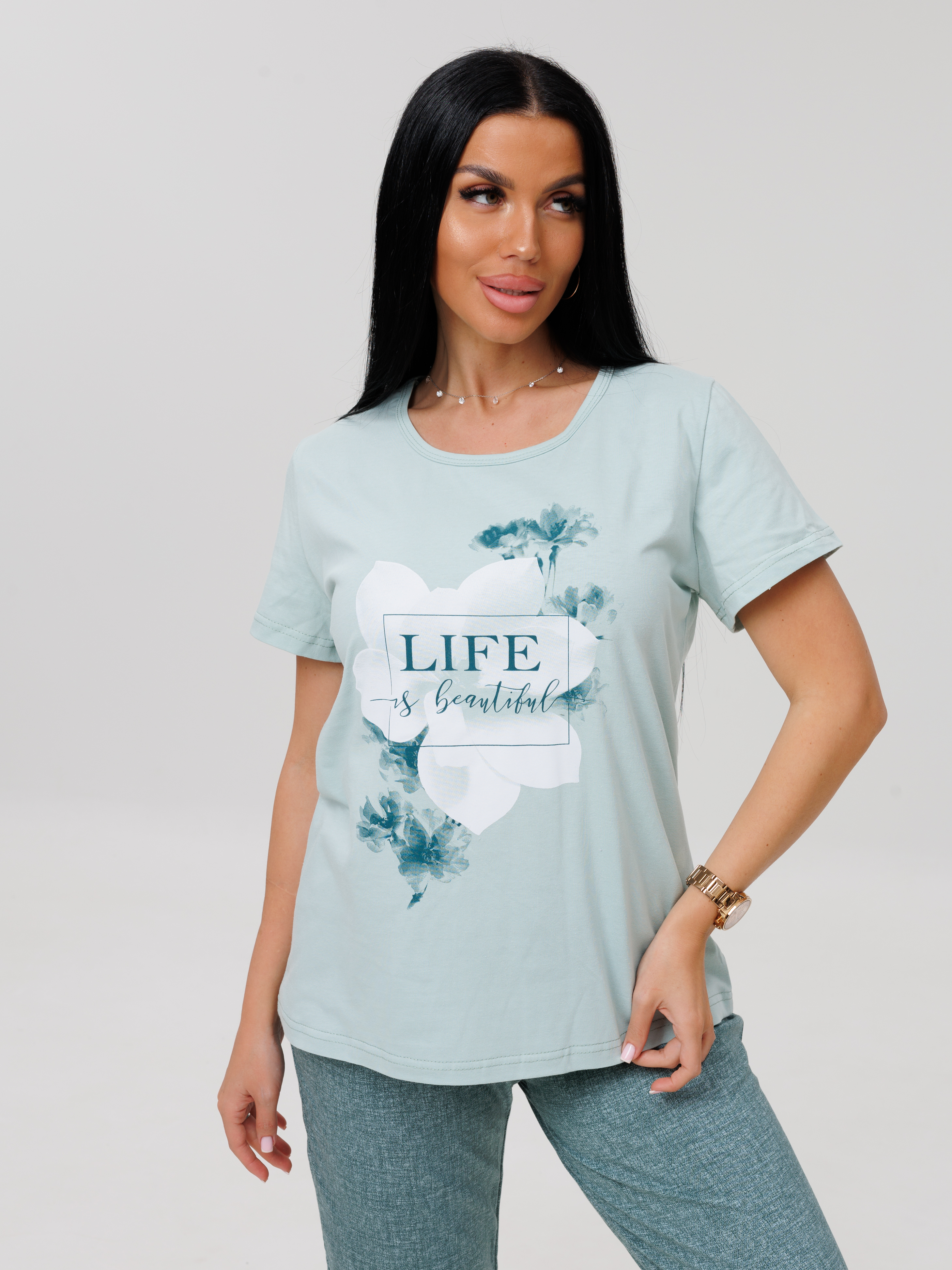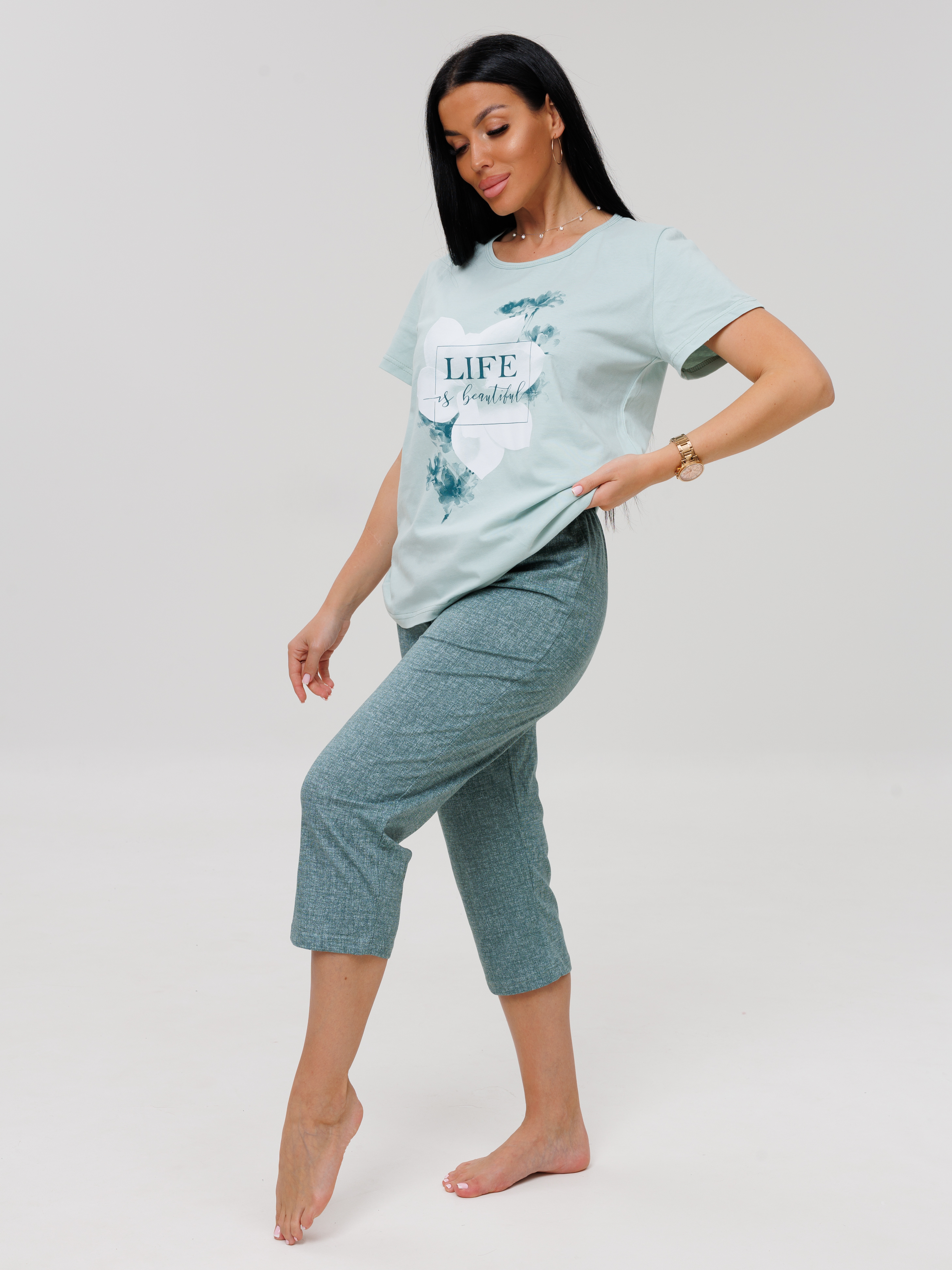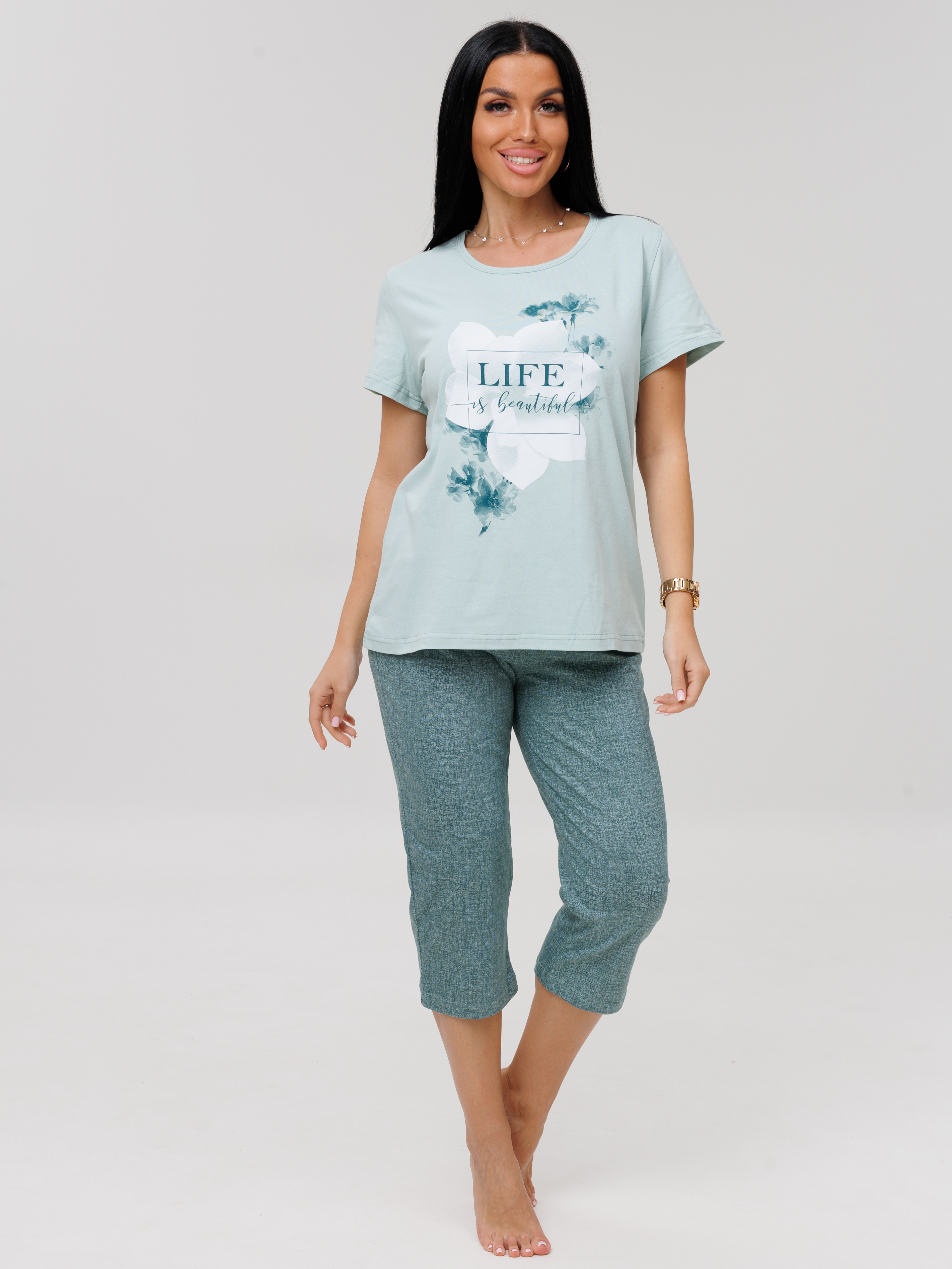 Женская пижама П-33(К) / Серо-зеленый (надписи)