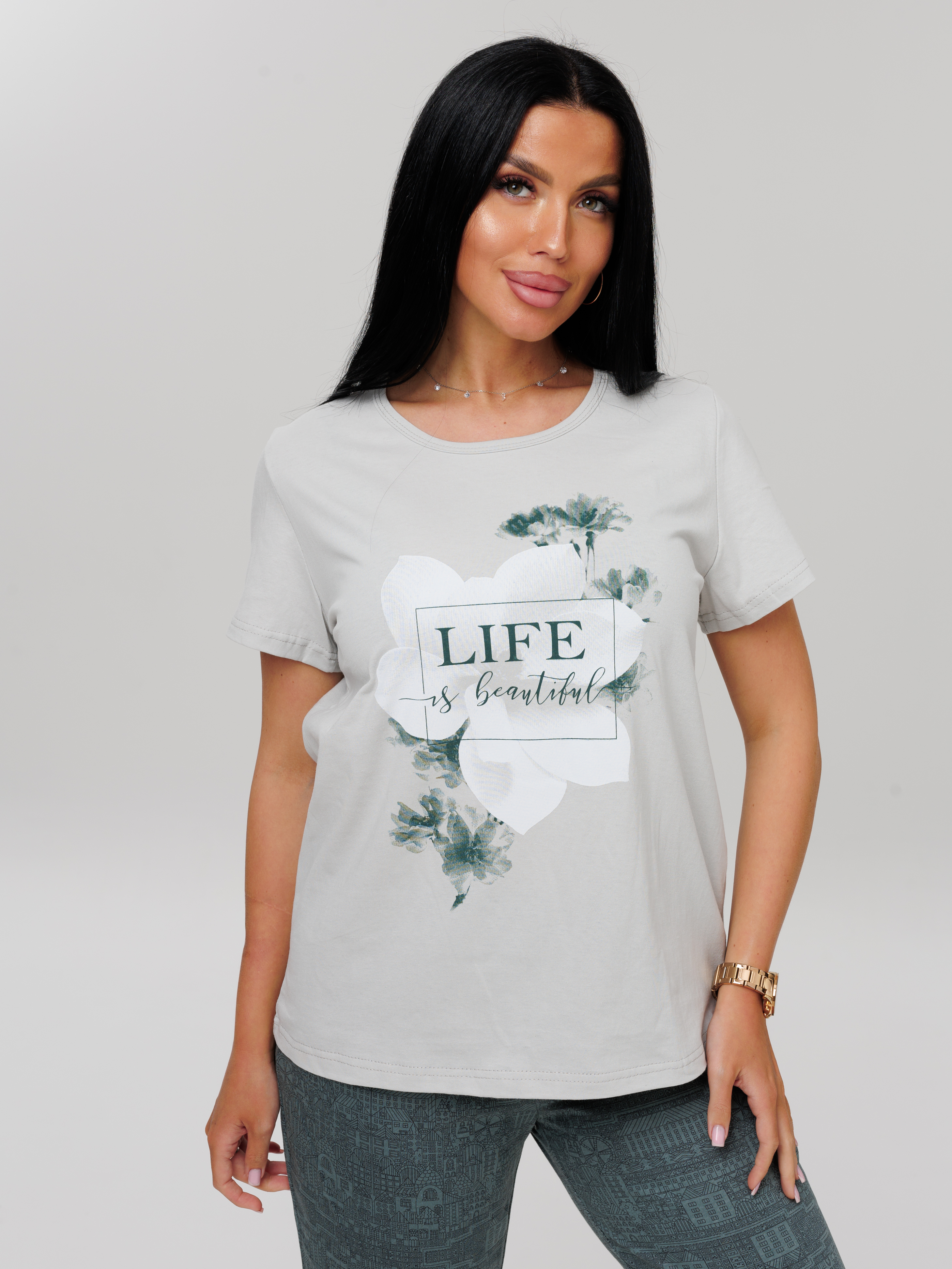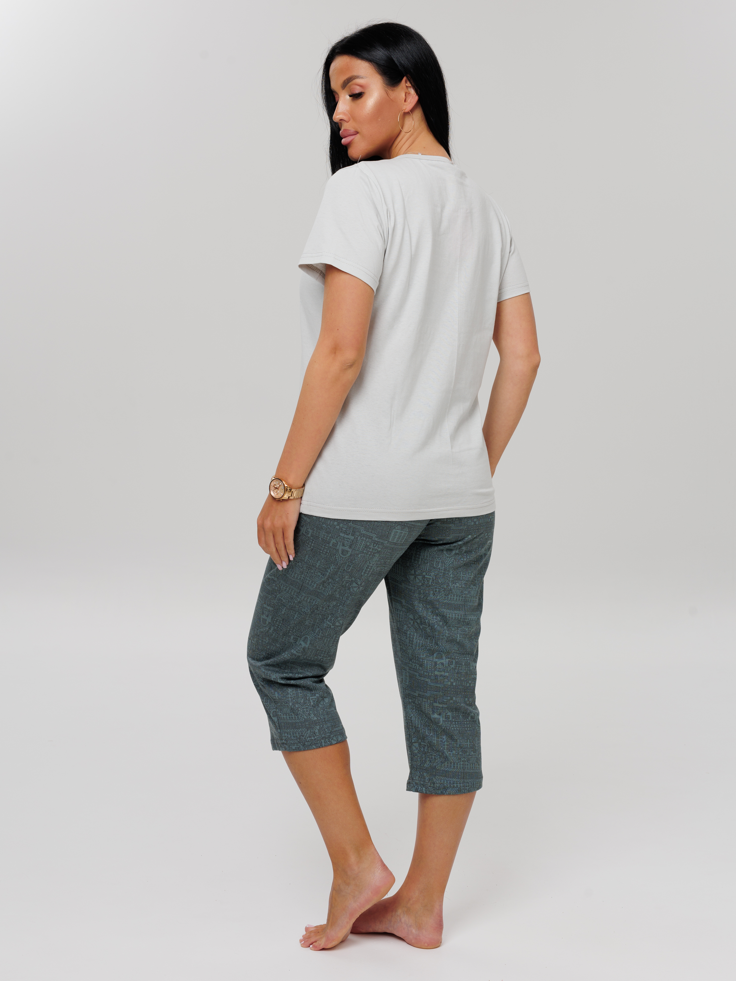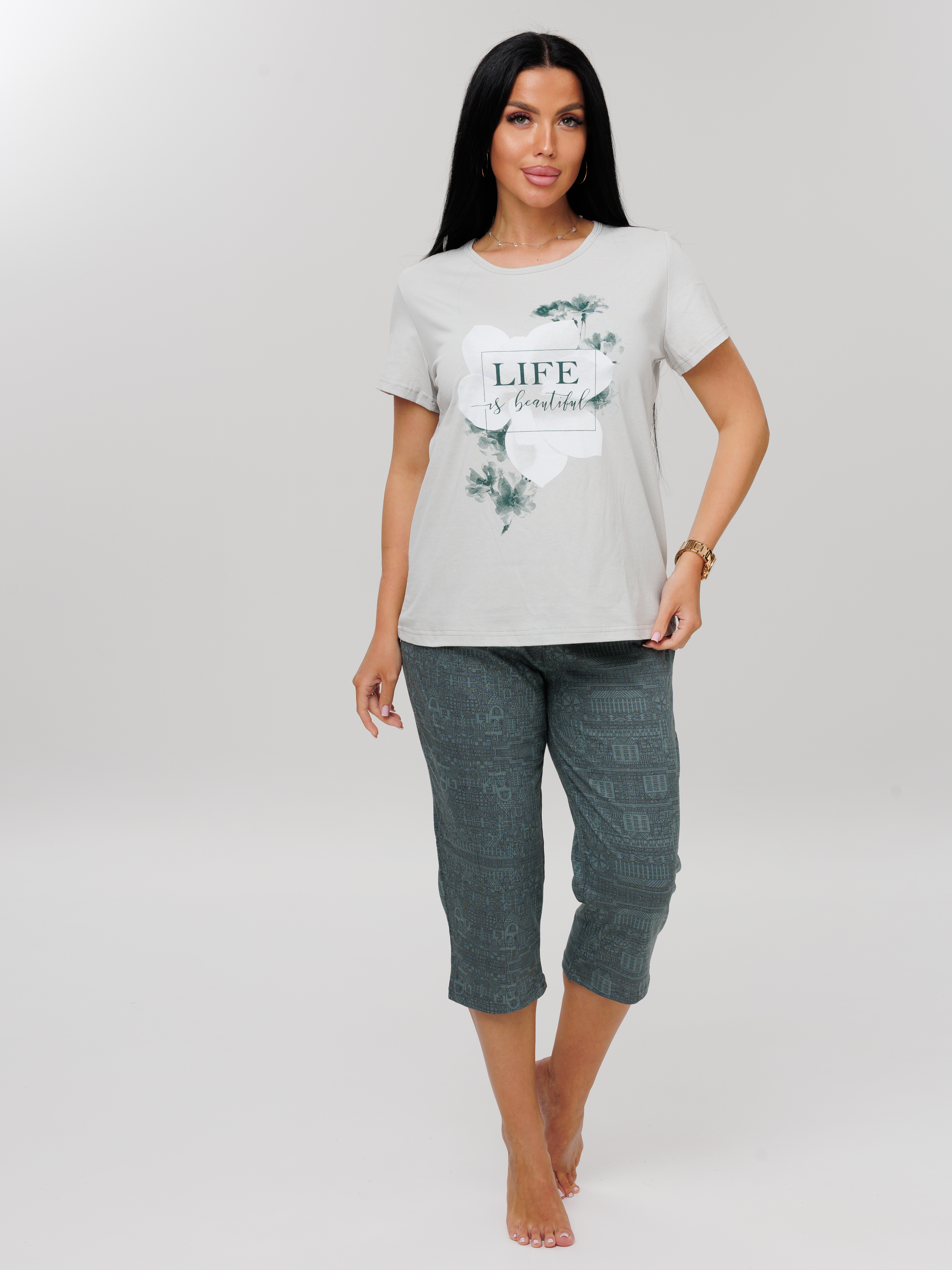 Женская пижама П-33(К) / Серо-зеленый (цветок)