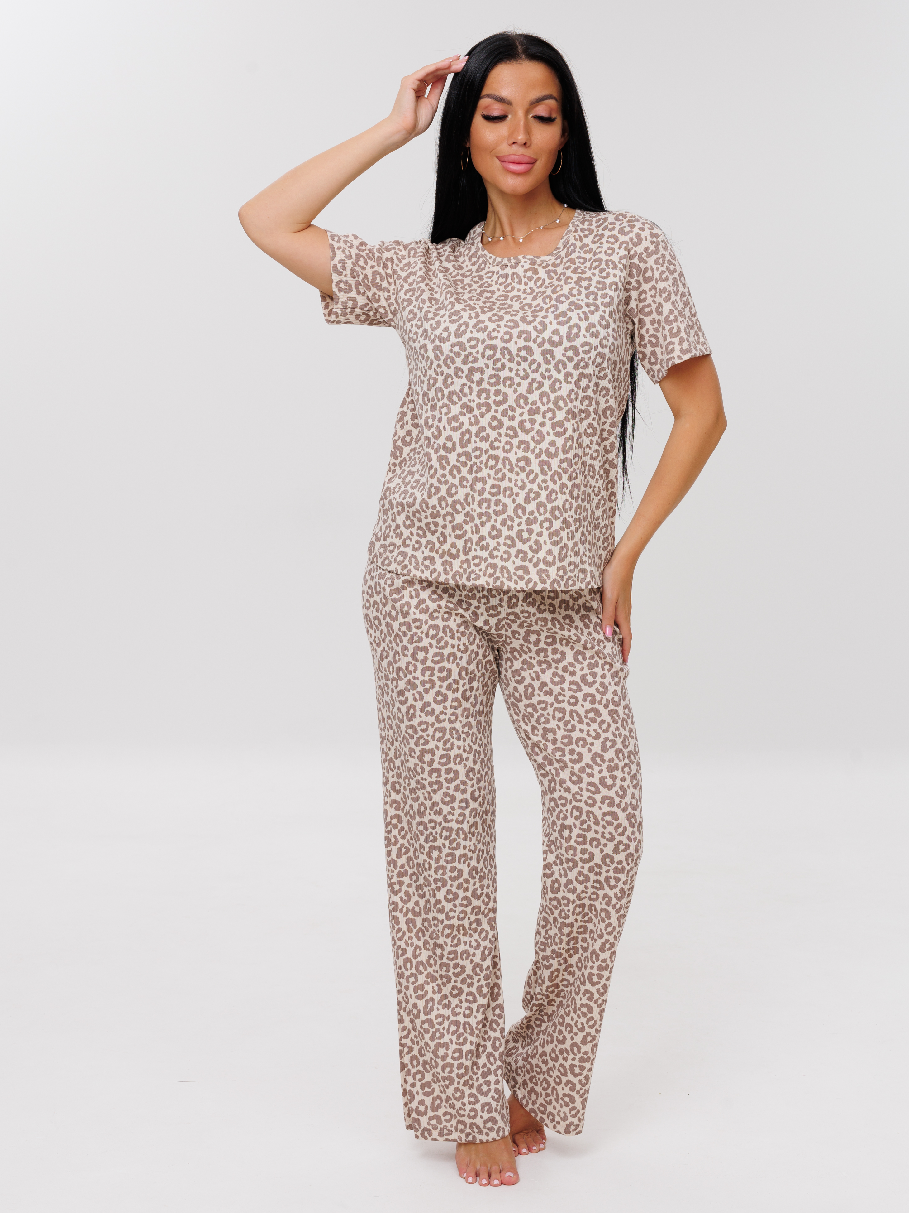 Женская пижама П-60(Каш) / Бежевый (леопард)