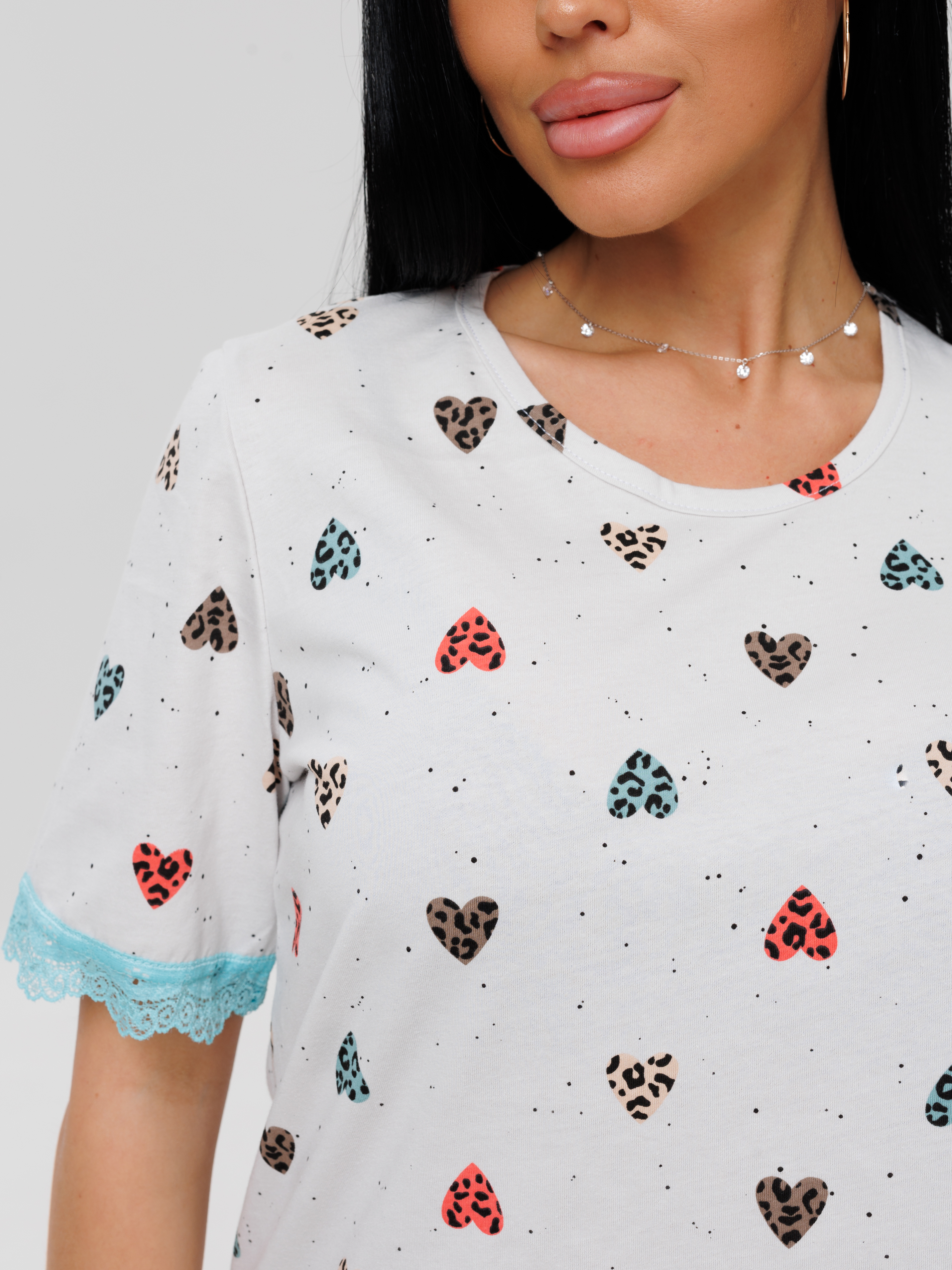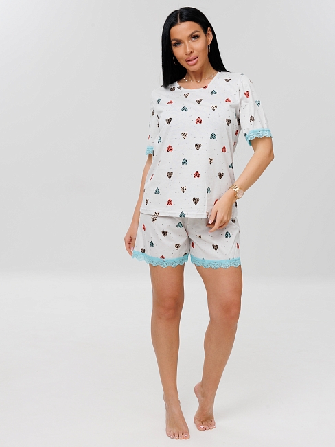 Женская пижама П-69(К) выполнена из трикотажного полотна - кулирка, в составе которого натуральный 100% хлопок. Шорты пижамные свободного кроя имеют широкую резинку, которая не давит на живот. Футболка прямого кроя с коротким рукавом, округлой горловиной и молодежным принтом. Натуральный состав домашнего комплекта устойчив к неоднократным стиркам, позволяет коже дышать и не чувствовать дискомфорта. Пижама домашняя женская подходит как в качестве домашней одежды, так и одежды для сна.