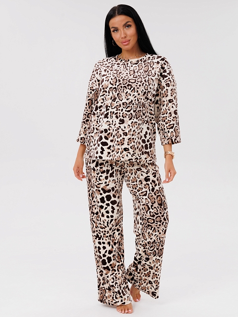 Женская пижама П-82(В) / Бежевый (леопард) - отличный