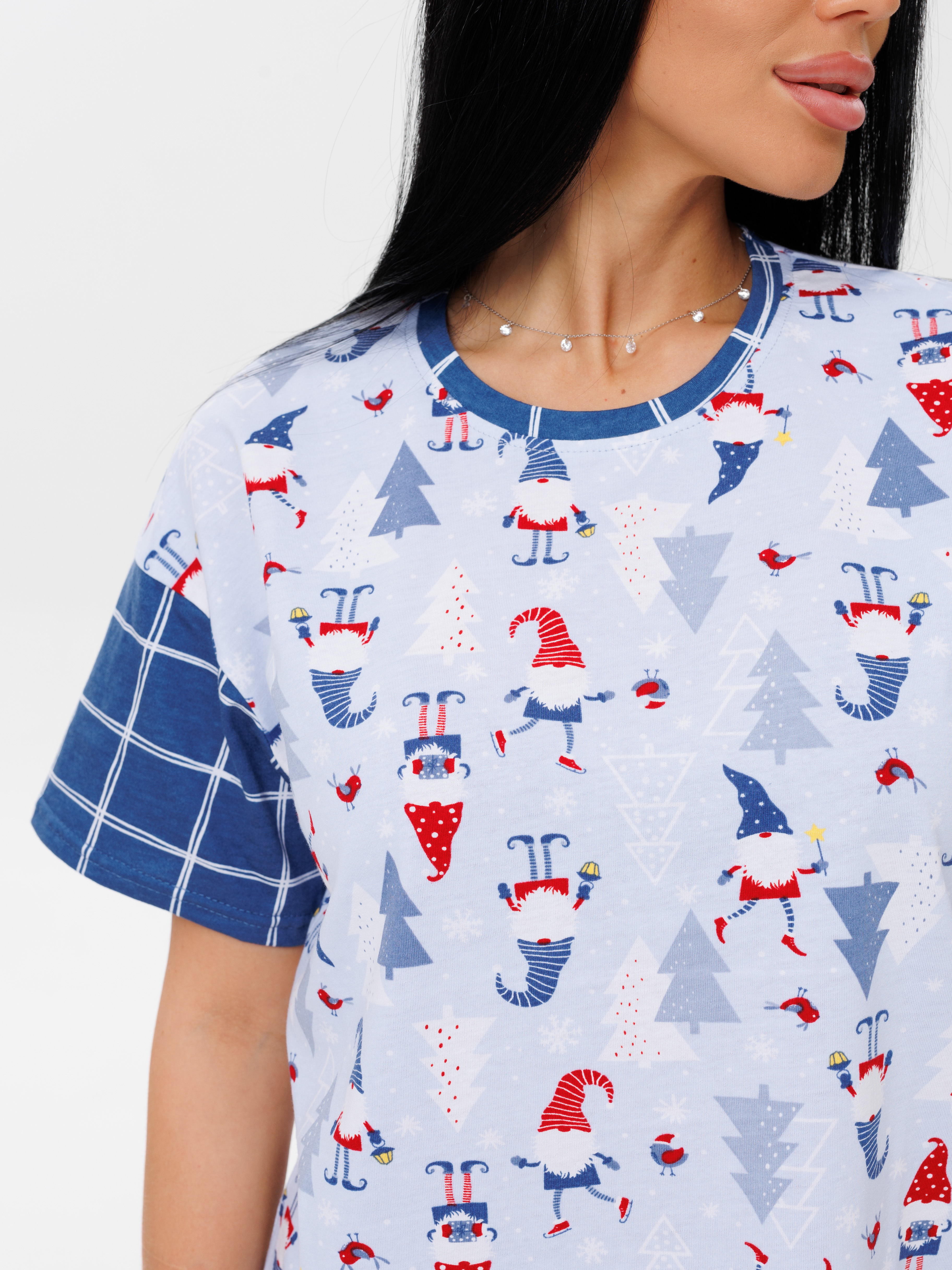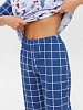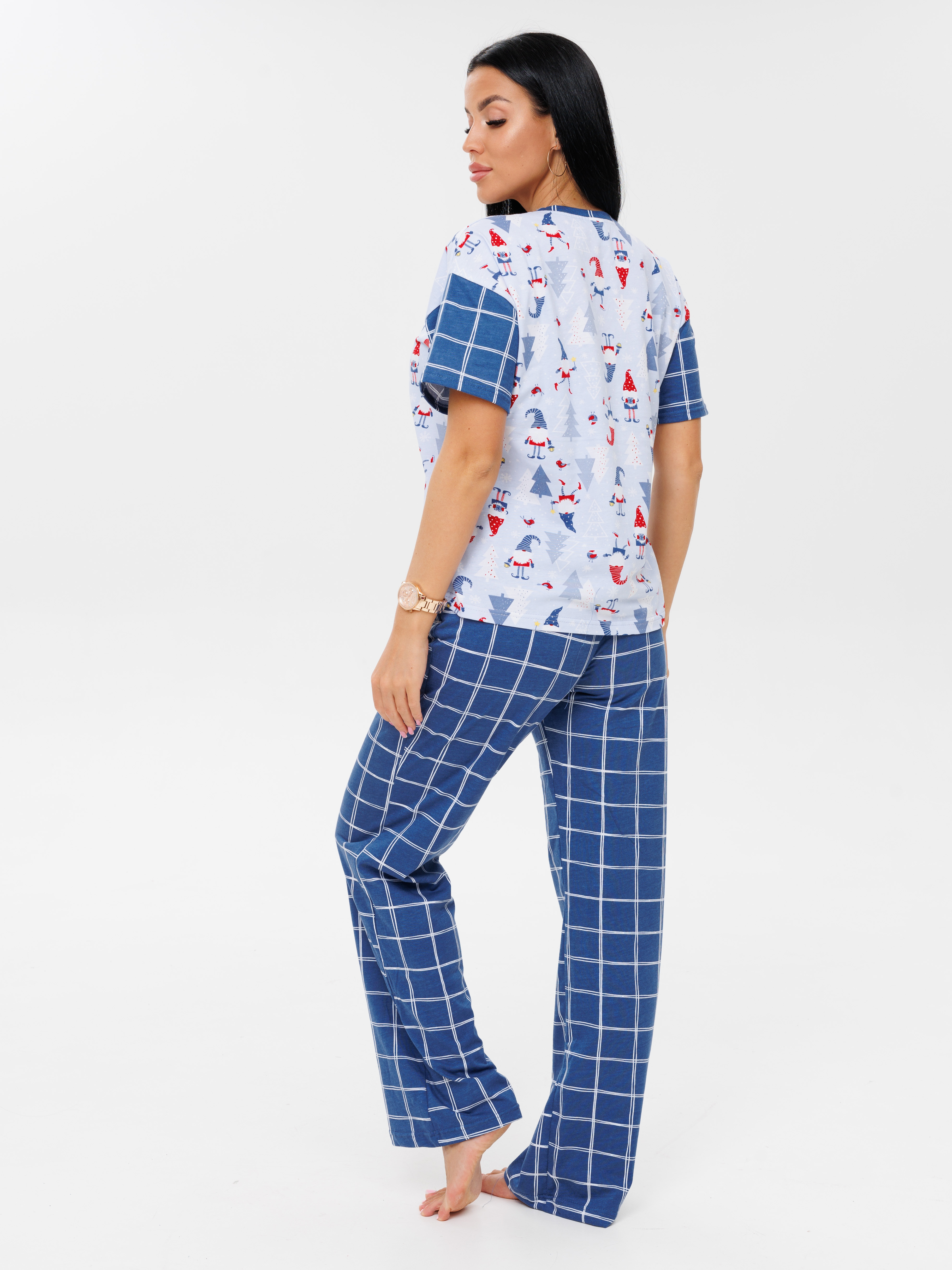 Женская пижама П-85(К) из трикотажного 100% хлопка. Уютная домашняя одежда состоит из футболки с коротким рукавом и пижамных брюк. Штаны на резинке, футболка свободного кроя.