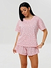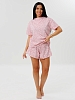 Женская пижама П-98 (К) подарит Вам комфорт, легкость в домашней обстановке после тяжелого рабочего дня. Пижама с шортами и футболкой выполнена из трикотажного полотна - кулирка, в составе которого натуральный 100% хлопок. Шорты пижамные свободного кроя имеют широкую резинку, которая не давит на живот. Футболка прямого кроя с коротким рукавом, округлой горловиной и молодежным принтом.