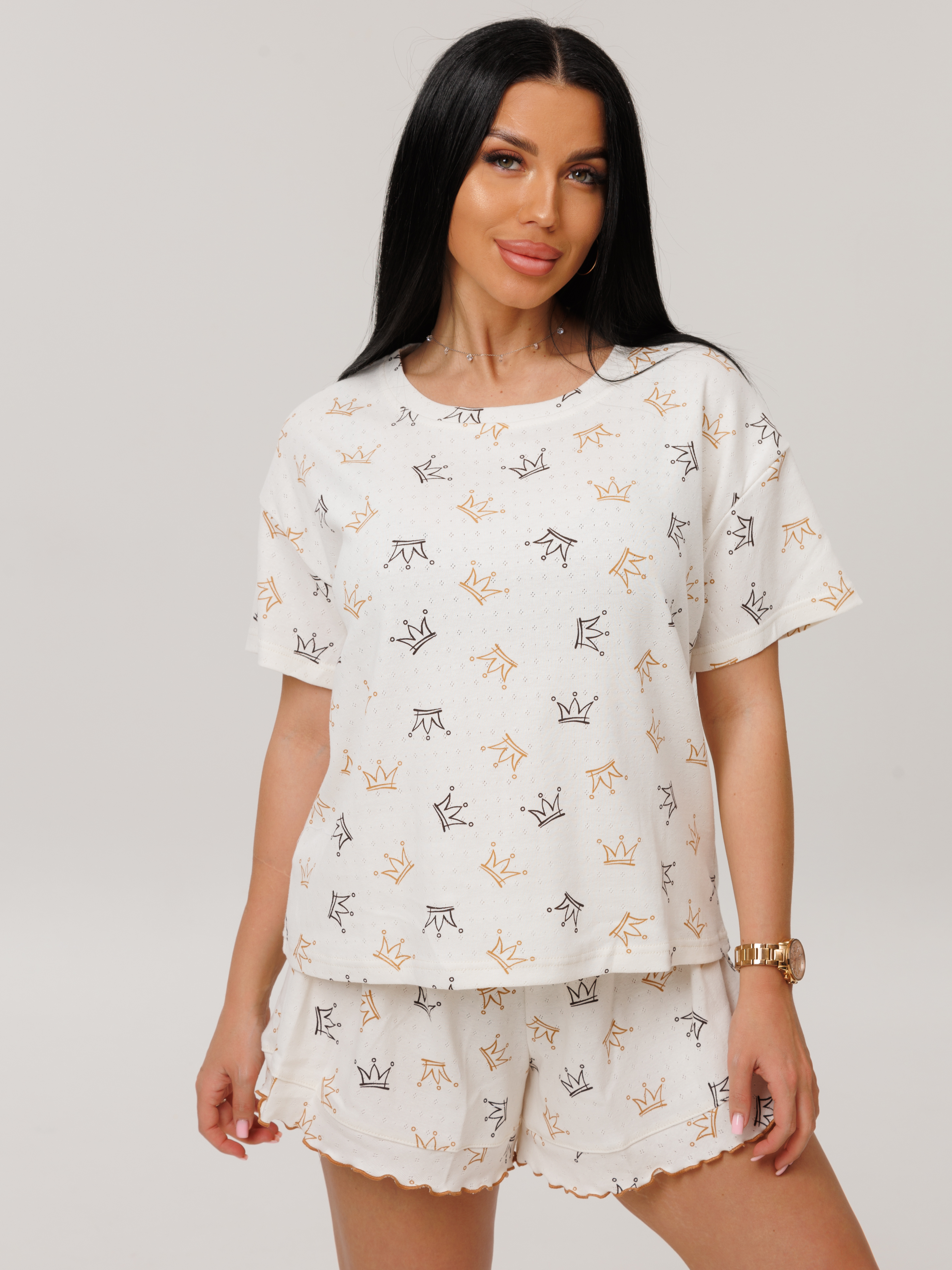 Женская пижама П-98(ТРН) / Молочный (короны)
