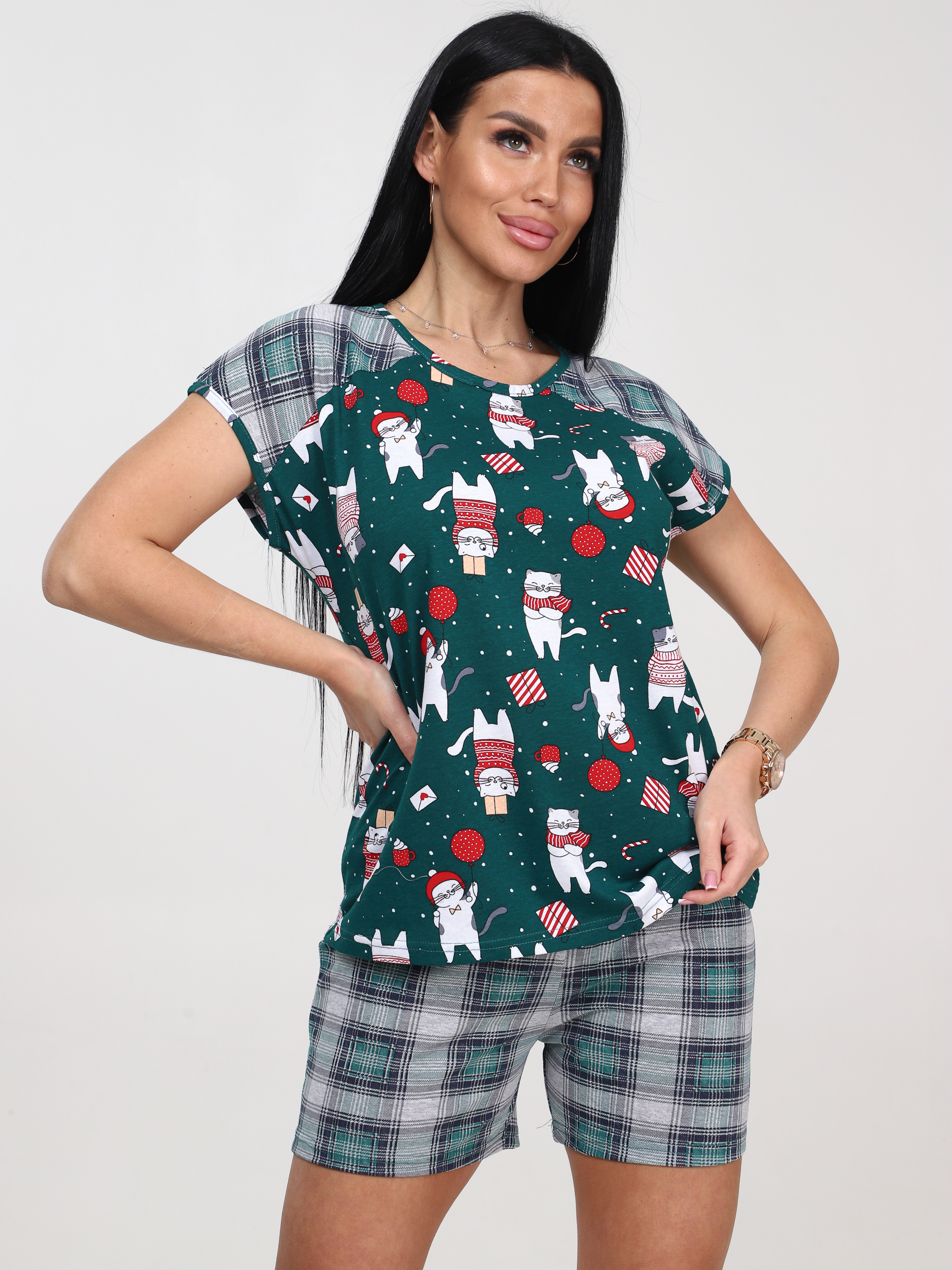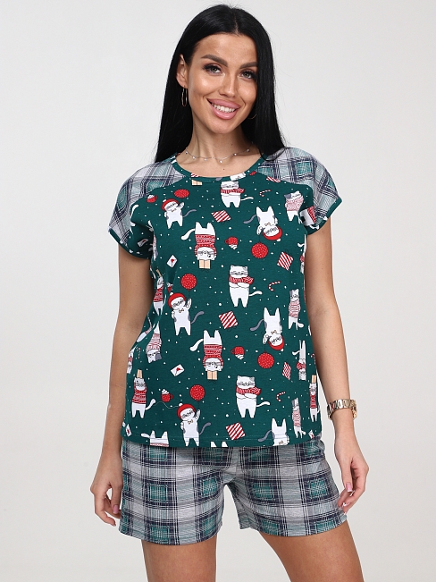 Женская пижама с шортами КК-39 / Котики