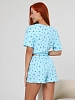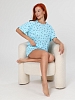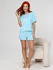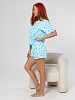Пижама "Шодо" из набивного трикотажного полотна "кашкорсе" состоит из футболки и шорт. Футболка свободного покроя со спущенной линией плеча, короткими втачными рукавами, горловиной овальной формы, обработанной втачной планкой. Нижние срезы рукавов и низ изделия обработаны узкой обметочной строчкой, создающей красивый волнистый край. Шорты средней длины с цельнокроеным поясом с эластичной лентой. Нижние срезы шорт обработаны узкой обметочной строчкой, создающей красивый волнистый край.