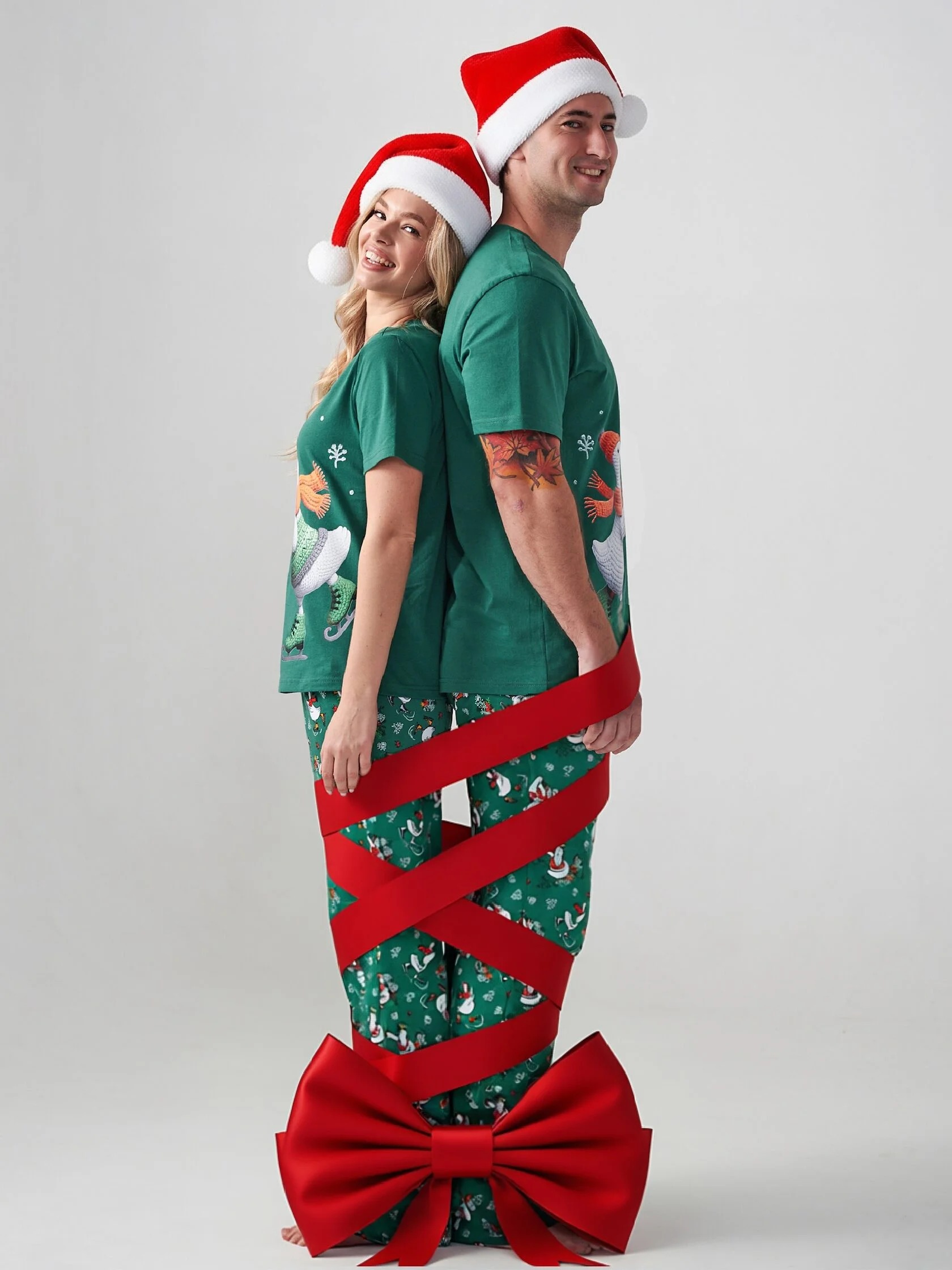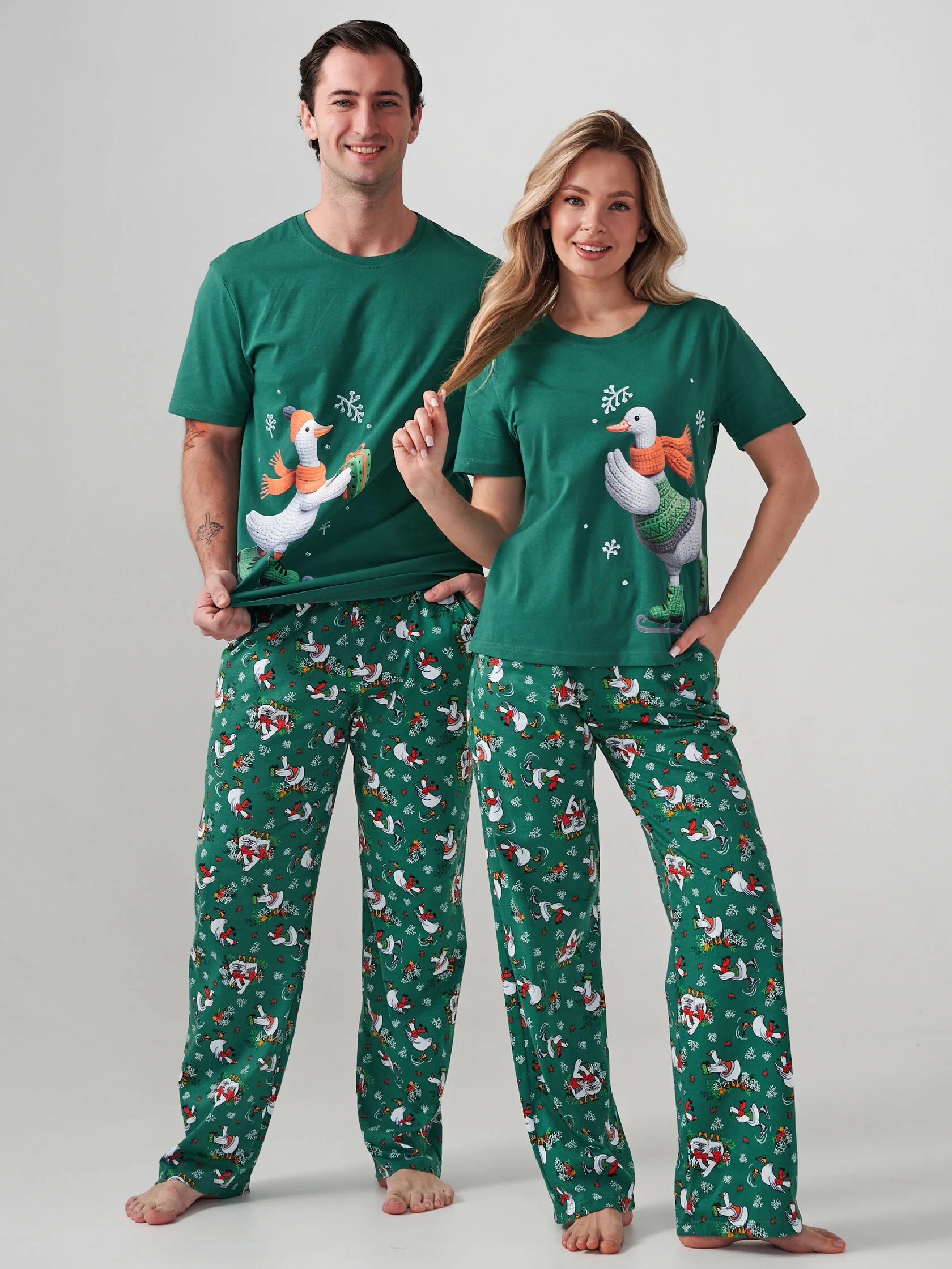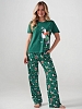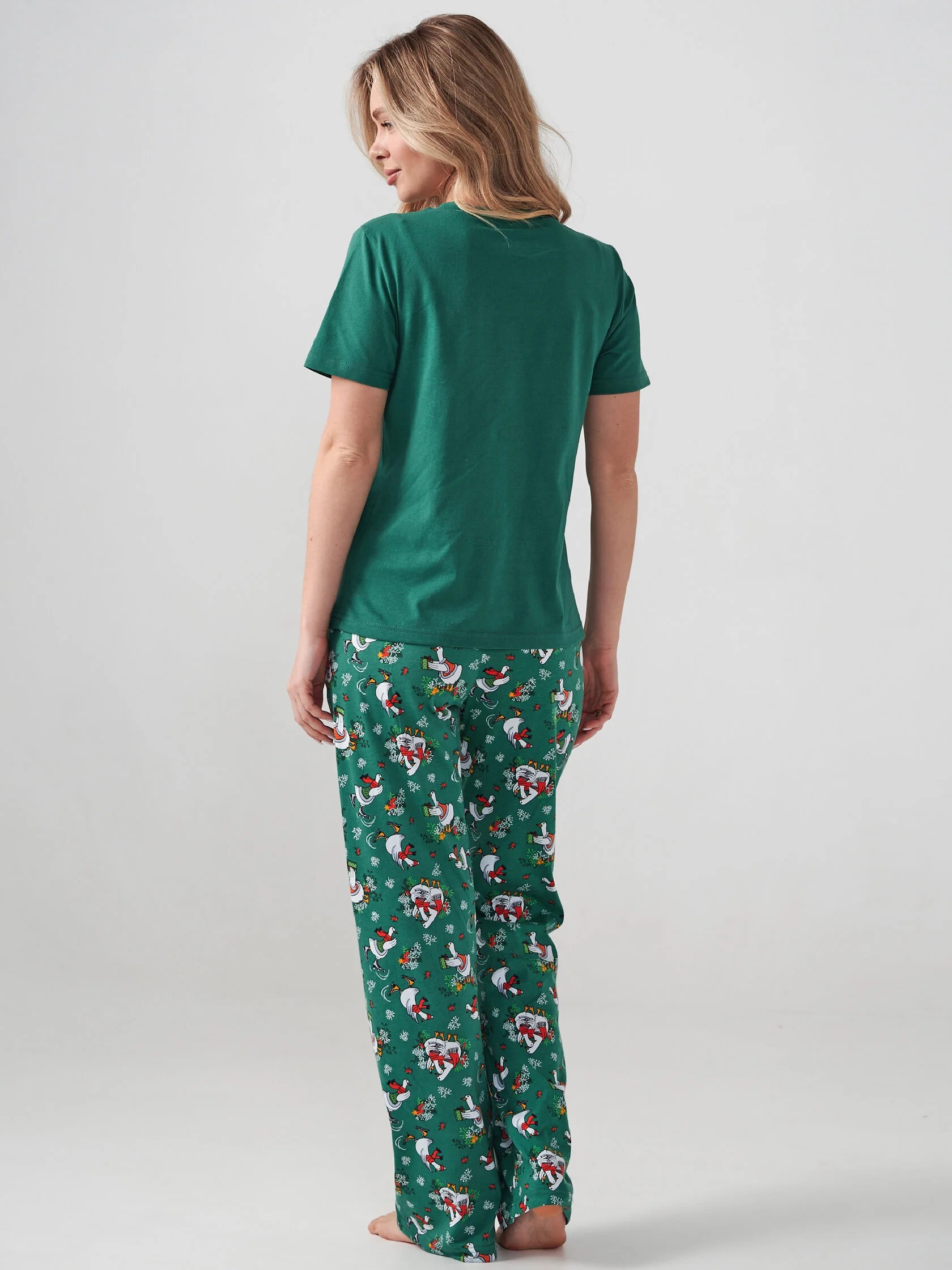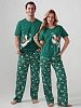 Женская пижама "Зимние забавы" 2411-К / Зеленый с футболкой и свободными брюками, отшивается из хлопкового трикотажного полотна. Веселый яркий принт создаст настроение.