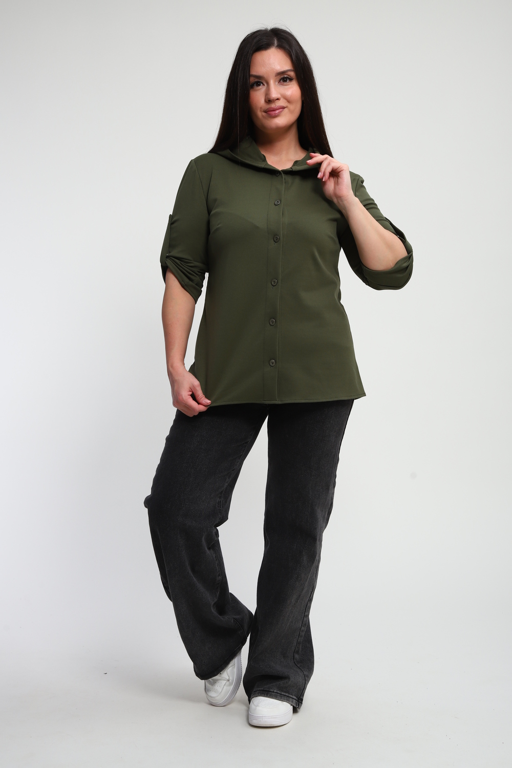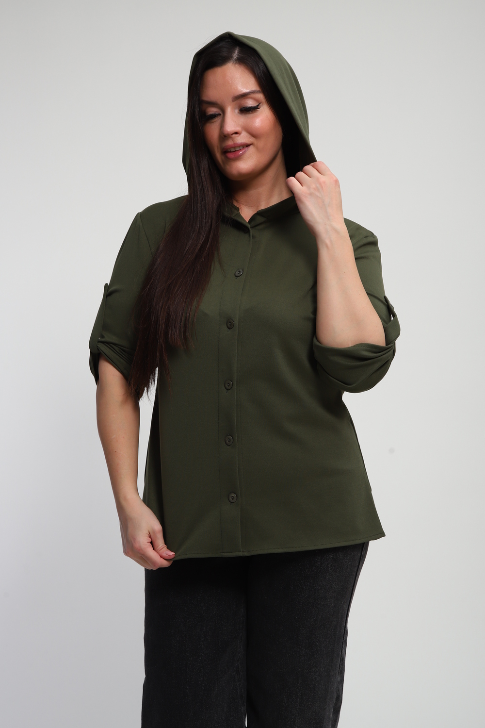 Ищете идеальную рубашку, сочетающую в себе удобство и актуальный дизайн? Наша женская рубашка на пуговицах с капюшоном – это то, что вам нужно! Выполненная из премиальной ткани "академик", она дарит ощущение мягкости и комфорта на протяжении всего дня.