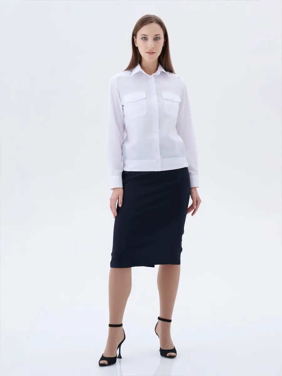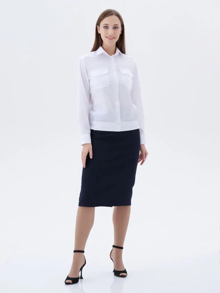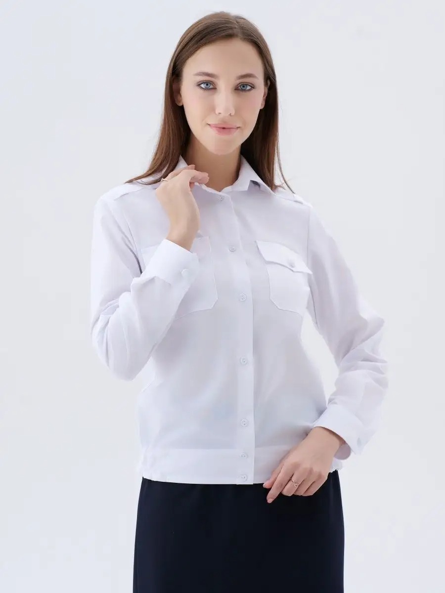 Рубашка форменная с длинным рукавом для сотрудников Полиции, ДПС. с застежкой до низа на восемь-девять пуговиц. Полочки рубашек с верхними накладными карманами с защипами, с клапанами, застегивающимися на пуговицы. Спинка с кокеткой. Рубашка с цельнокроеным поясом, стянутым в области боковых швов эластичными лентами. Воротник отложной с отрезной стойкой. Сорочка форменная для женщин.